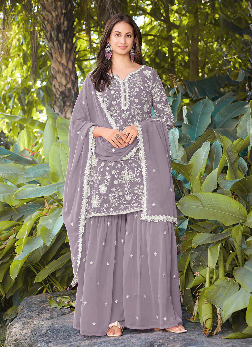 Garb These Beautiful Party Wear Looking Readymade Sharara Suits.These Top And Bottom Are Georgette And Georgette Dupatta Fabricated.Its Beautified With Disigner Embroidery,Beads Work.