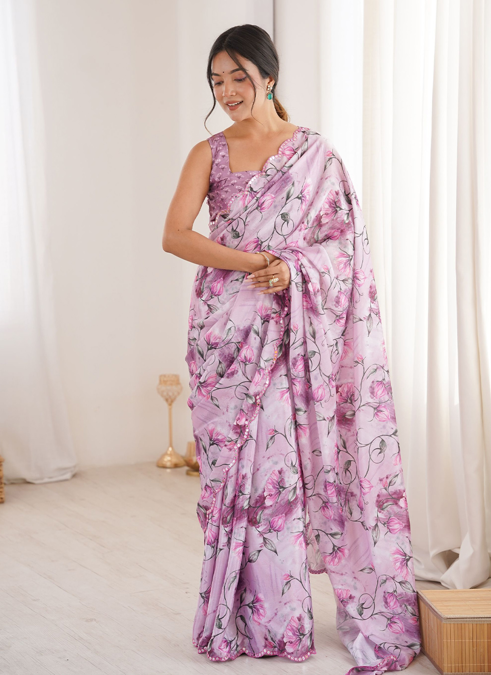 Attractive These Party Wear Saree in Fine Colored.These Saree Are Chinon And Blouse is Chinon Fabricated.Its Beautified With Designer Digital Printed With Mirror Cut Work Border.