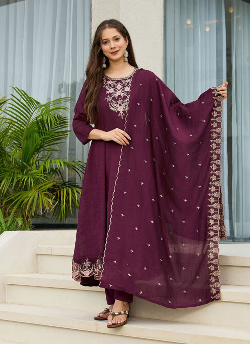 Garb These Beautiful Looking Readymade Suits.These Top Are Viscose Silk And Bottom Are Viscose Silk And Vichitra Silk Dupatta Fabricated.Its Beautified With Disigner Embroidery Work.