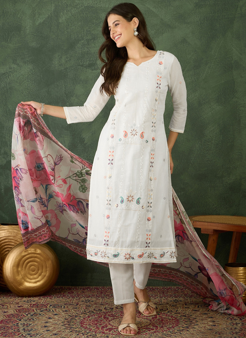 Garb These Beautiful Looking Readymade Suits.These Top Are Viscose Blend And Bottom Are Rayon And Chanderi Dupatta Fabricated.Its Beautified With Disigner Embroidery Work.