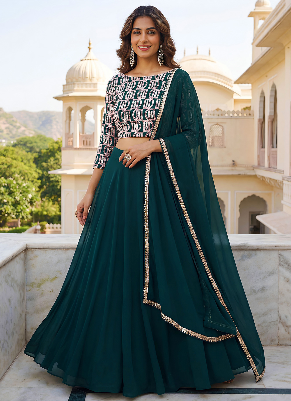 For A Designer Look,Grab These Lehenga Choli in Fine Colored.These Lehenga And Blouse Are Fabricated On Georgette Pair With Dupatta Are Georgette.Its Beautified With Designer Thread,Jari,Sequance Embroidery Work.