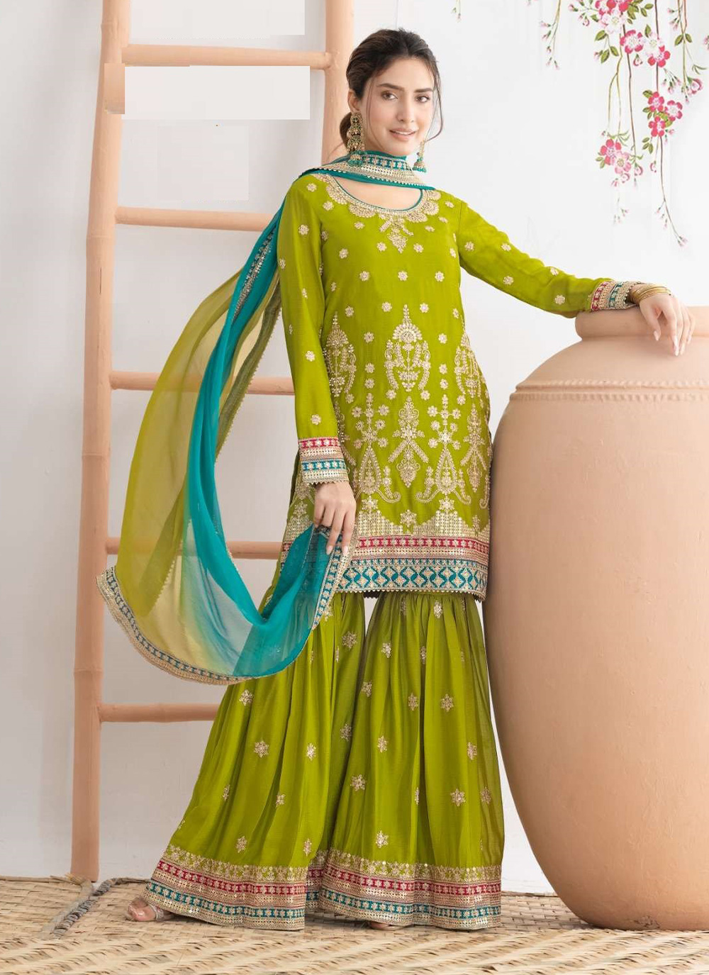 Garb These Designer Sharara Suit in Fine Colored Pair With Bottom And Dupatta.These Top Are Chinon And Dupatta Are Fabricated On Chinon Pair With Chinon Bottom.Its Beautified With Crepe Inner.Its Beautified With Heavy Designer Embroidery Work.