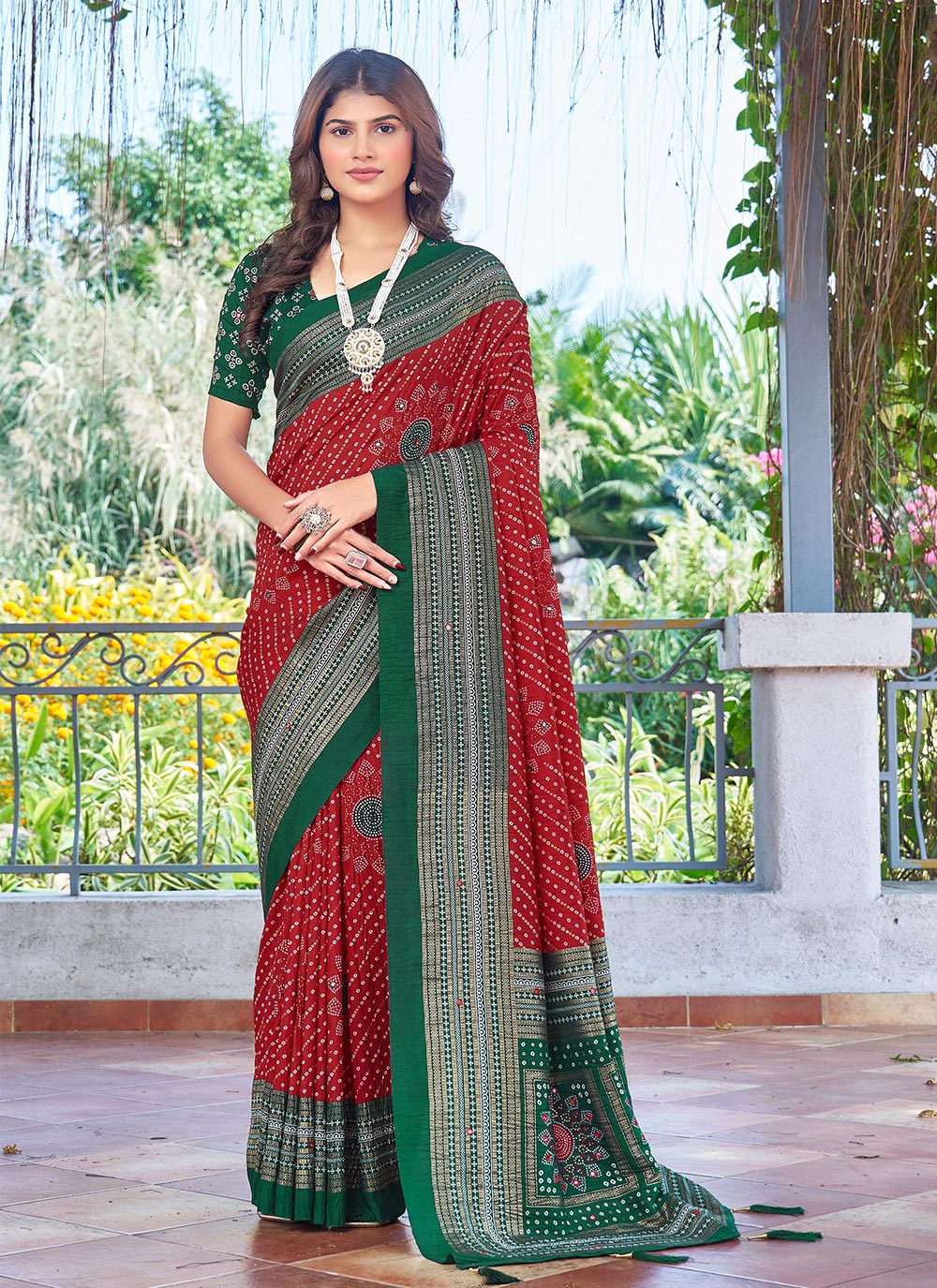 Looking These Traditinol Party Wear Saree in Fine Colored.These Saree Velvet Tussar Silk And Blouse is Fabricated On Velvet Tussar Silk Pair.Its Beautified With Woven Pallu Border Designer With Bandhani Printed.
