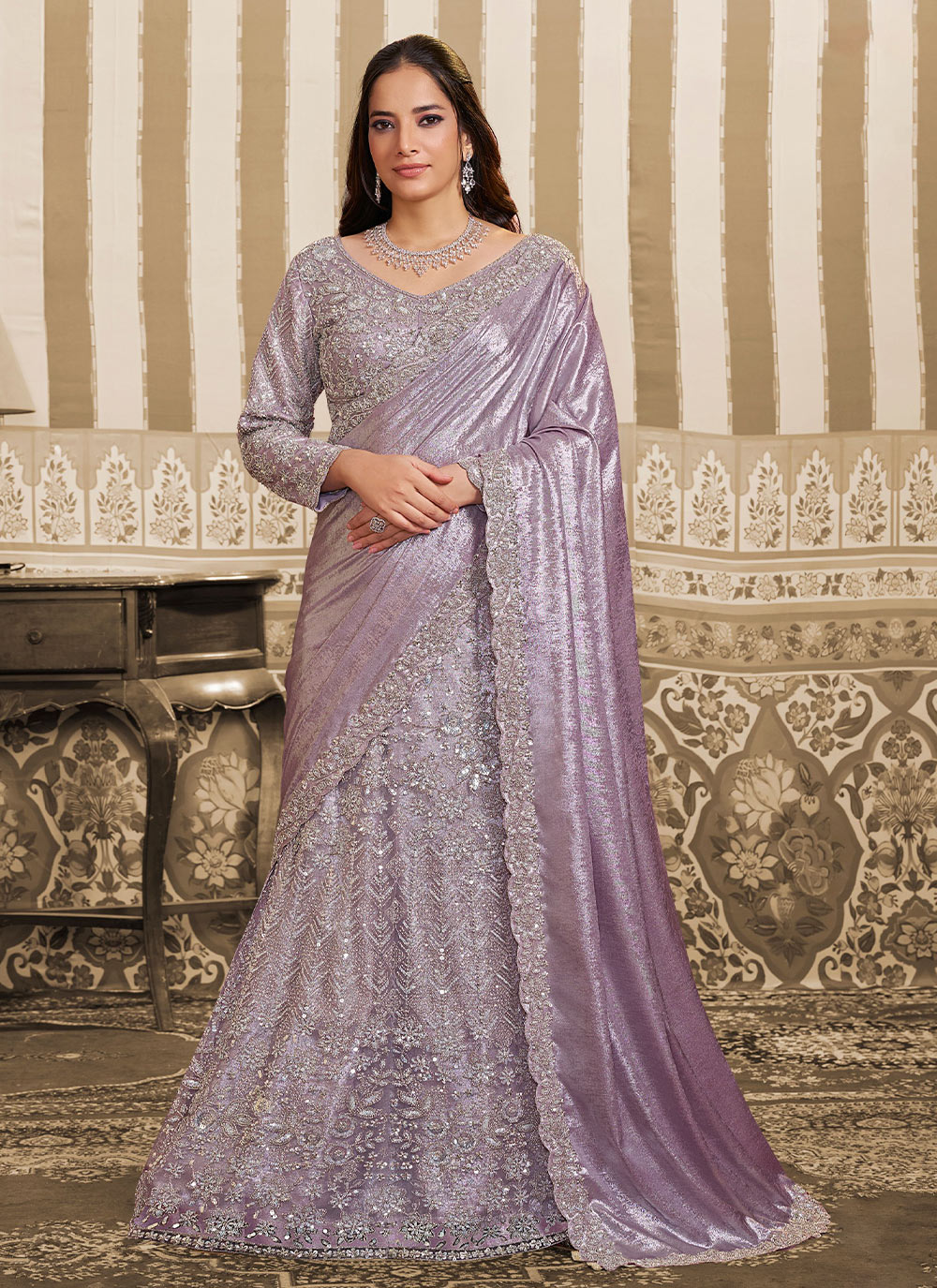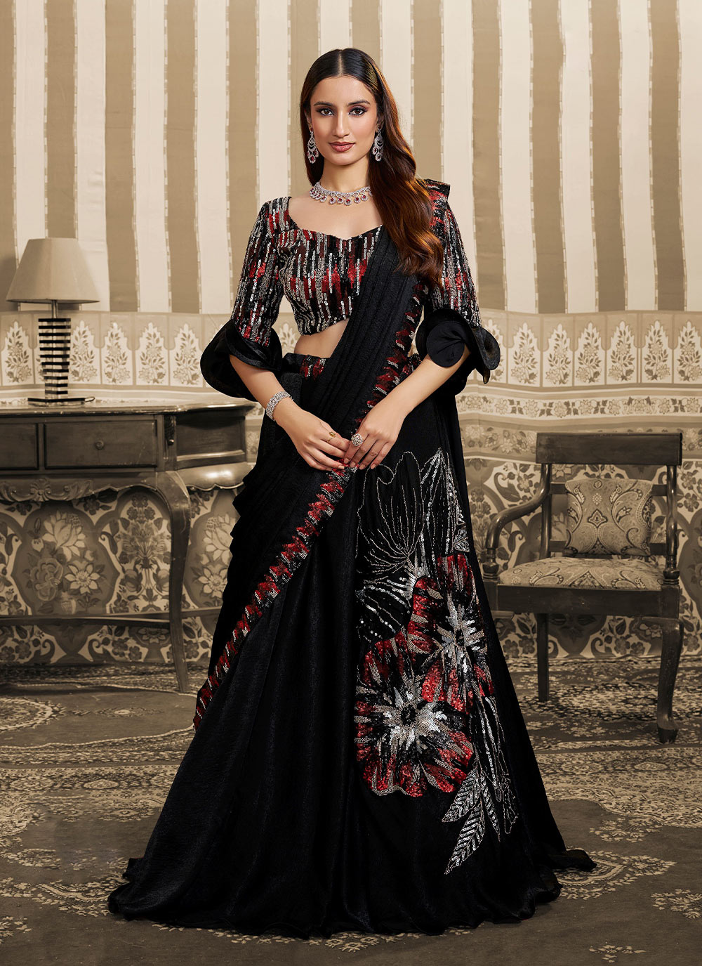 Lahenga Saree : Velvet Satin , Blouse : Mono Net