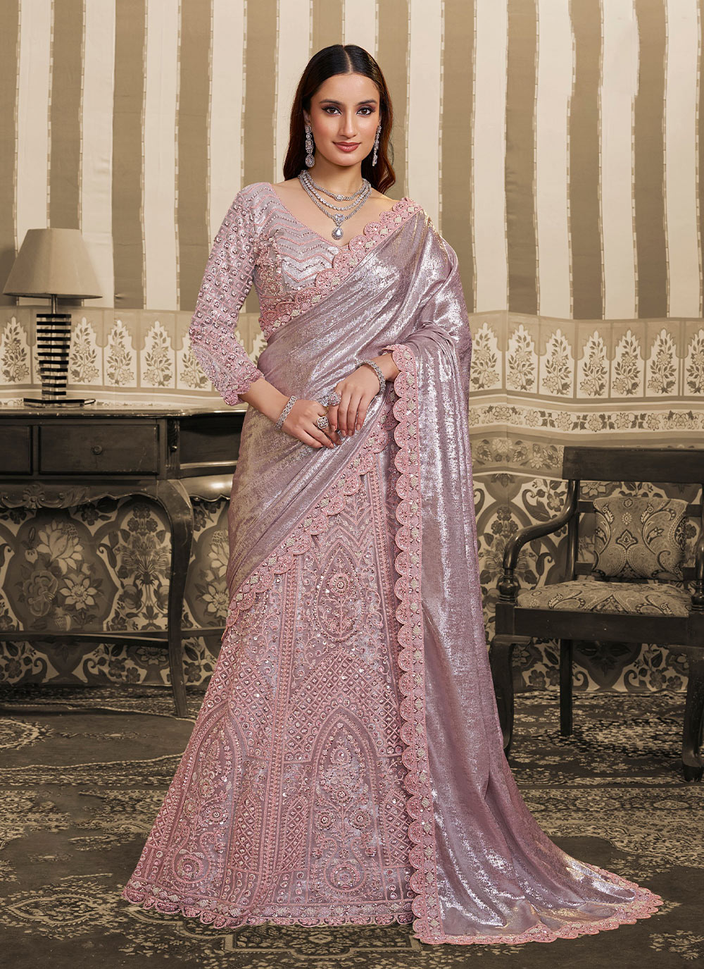 Lahenga Saree : Foil Satin , Blouse : Mono Net
