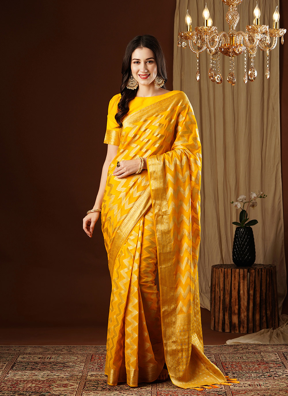 Grab These Party Wear Saree in Fine Colored Pair With Blouse.These Saree and Blouse Are Fabricated On Georgette.Its Beautified With Woven Jacquard Jari Lahariya Designer.