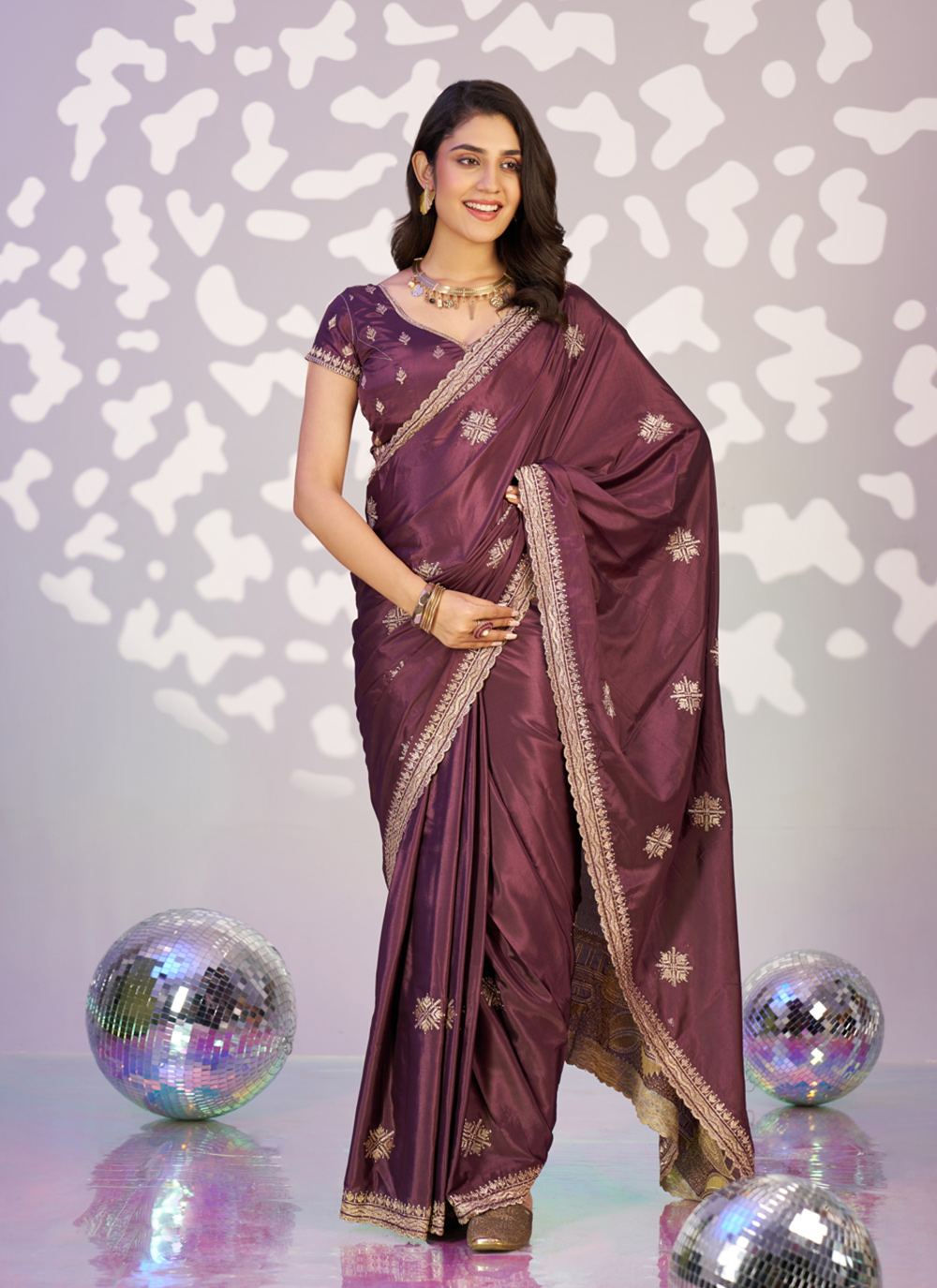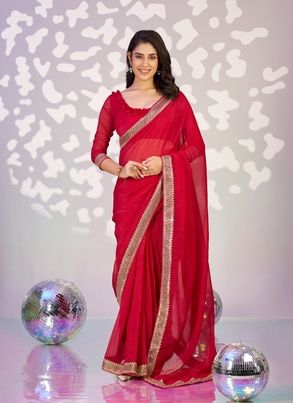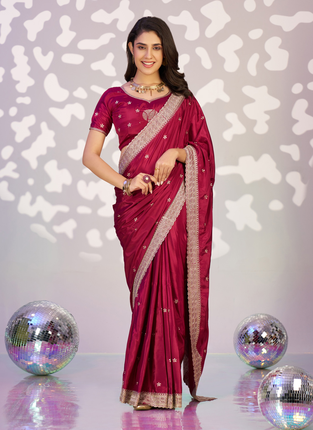 Attractive These Party Wear Ready To Wear Saree in Fine Colored Pair With Blouse.These Saree and Blouse Are Fabricated On Crunchy.Its Beautified With Designer Embroidery Work Lace Border.