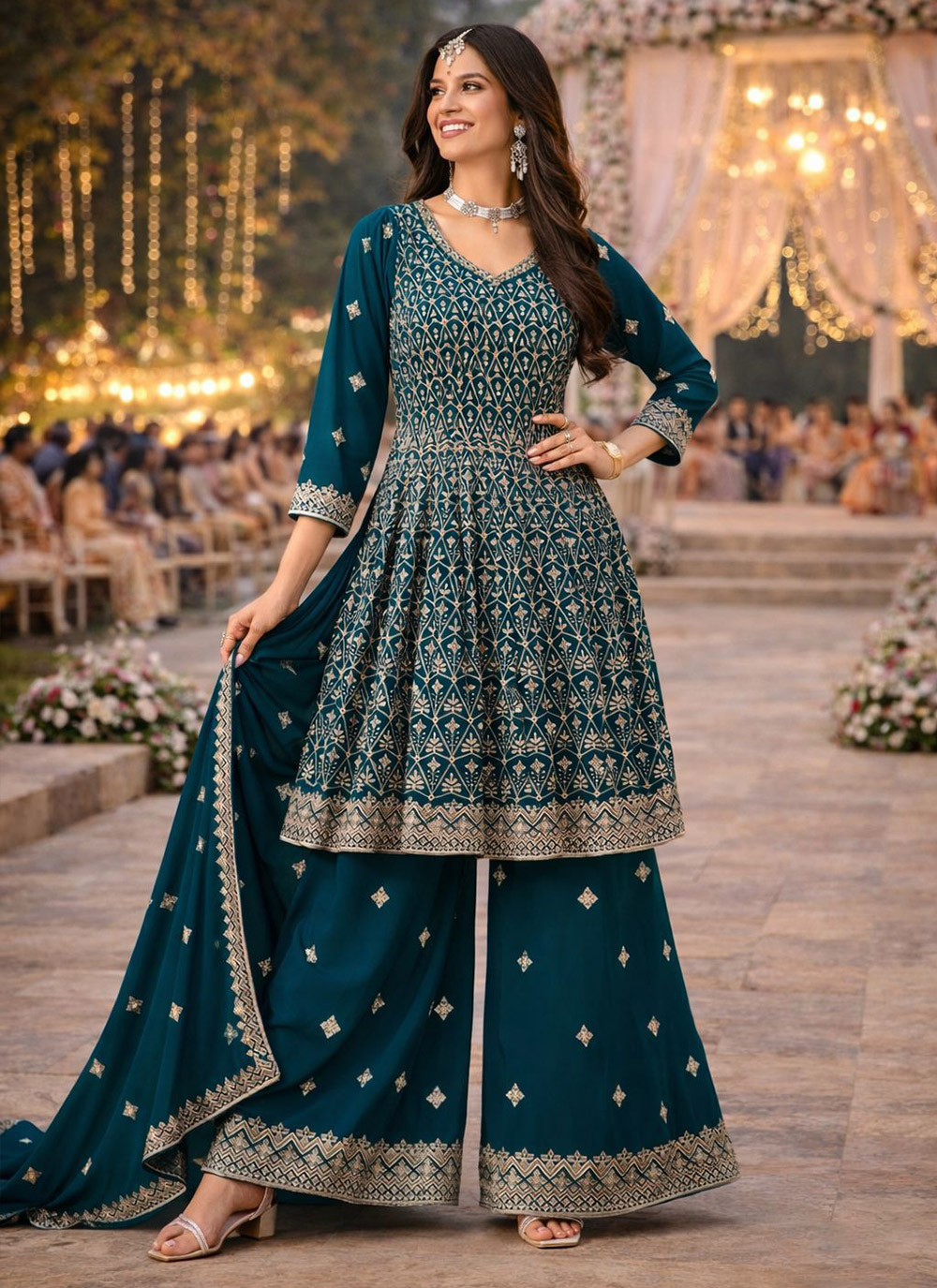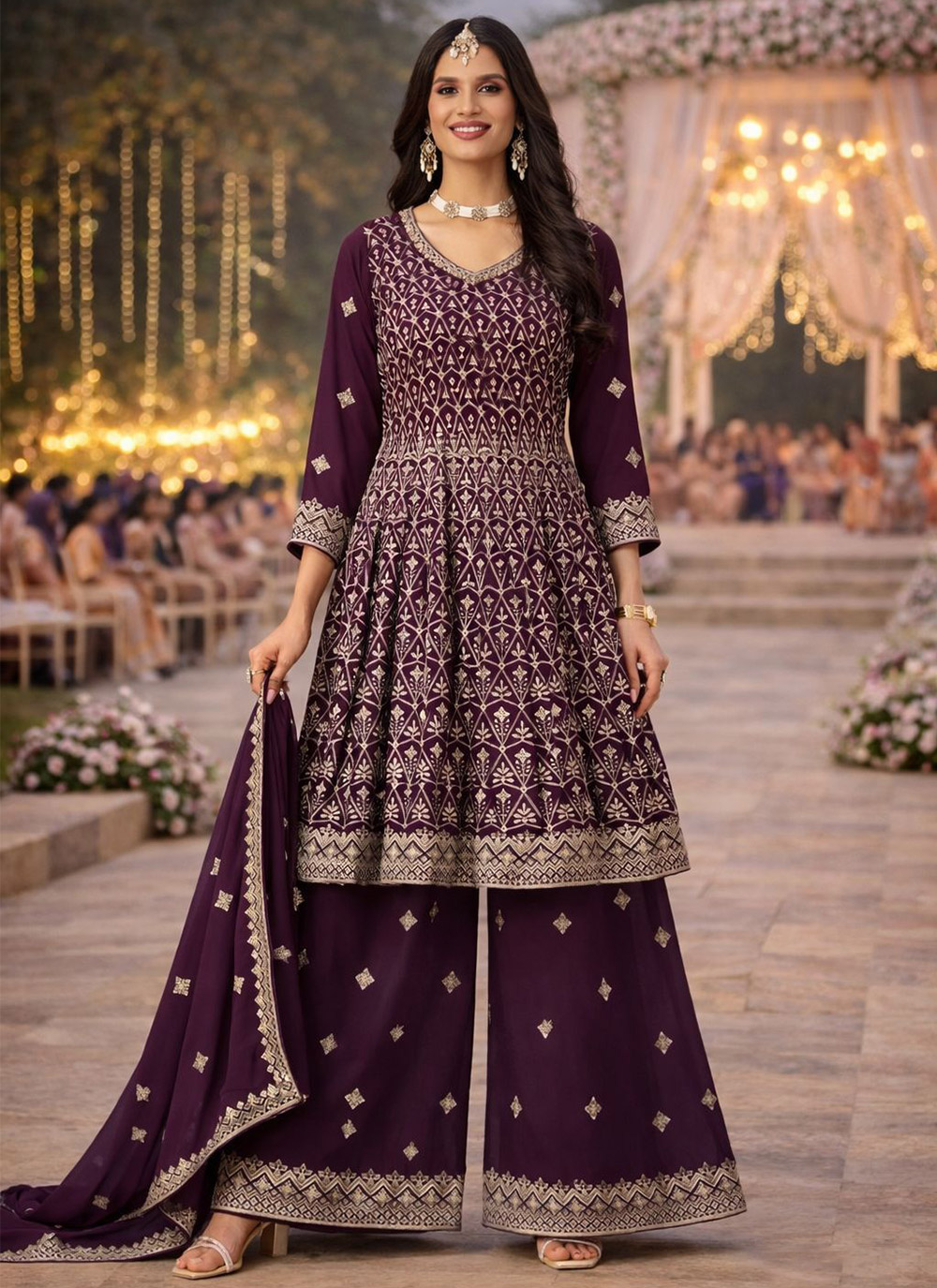 Attrective These Beautiful Looking Readymade Plazzo Suits.These Top And Bottom Are Georgette And Georgette Dupatta Fabricated.Its Beautified With Disigner Heavy Embroidery Work.