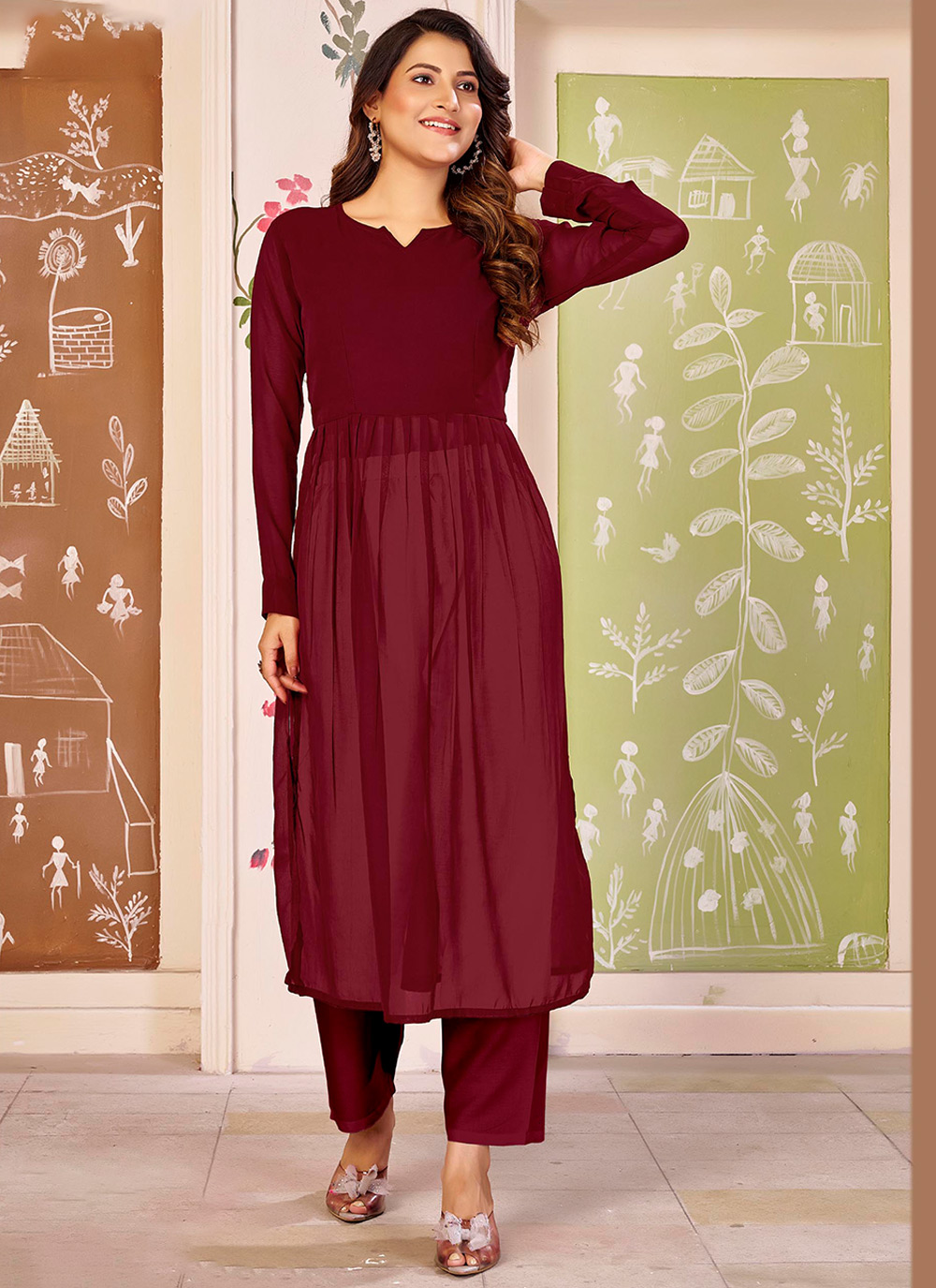 Looking These Beautiful Looking Readymade Nayra Style Kurti.These Kurti is Fabricated On Georgette.Its Beautified With Solid Designer.