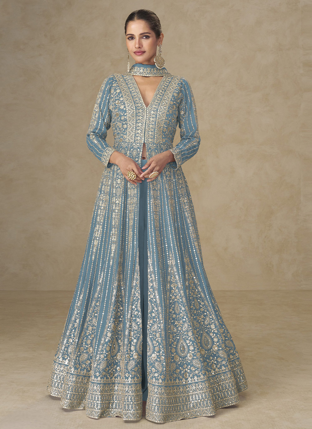 Attractive These Party Wear Free Size Stitched Anarkali Suit in Fine Colored Pair With Dupatta.These Top And Bottom Are Chinon And Dupatta Are Chinon And Pair With Crepe Inner.Its Beautified With Heavy Designer Embroidery Work.