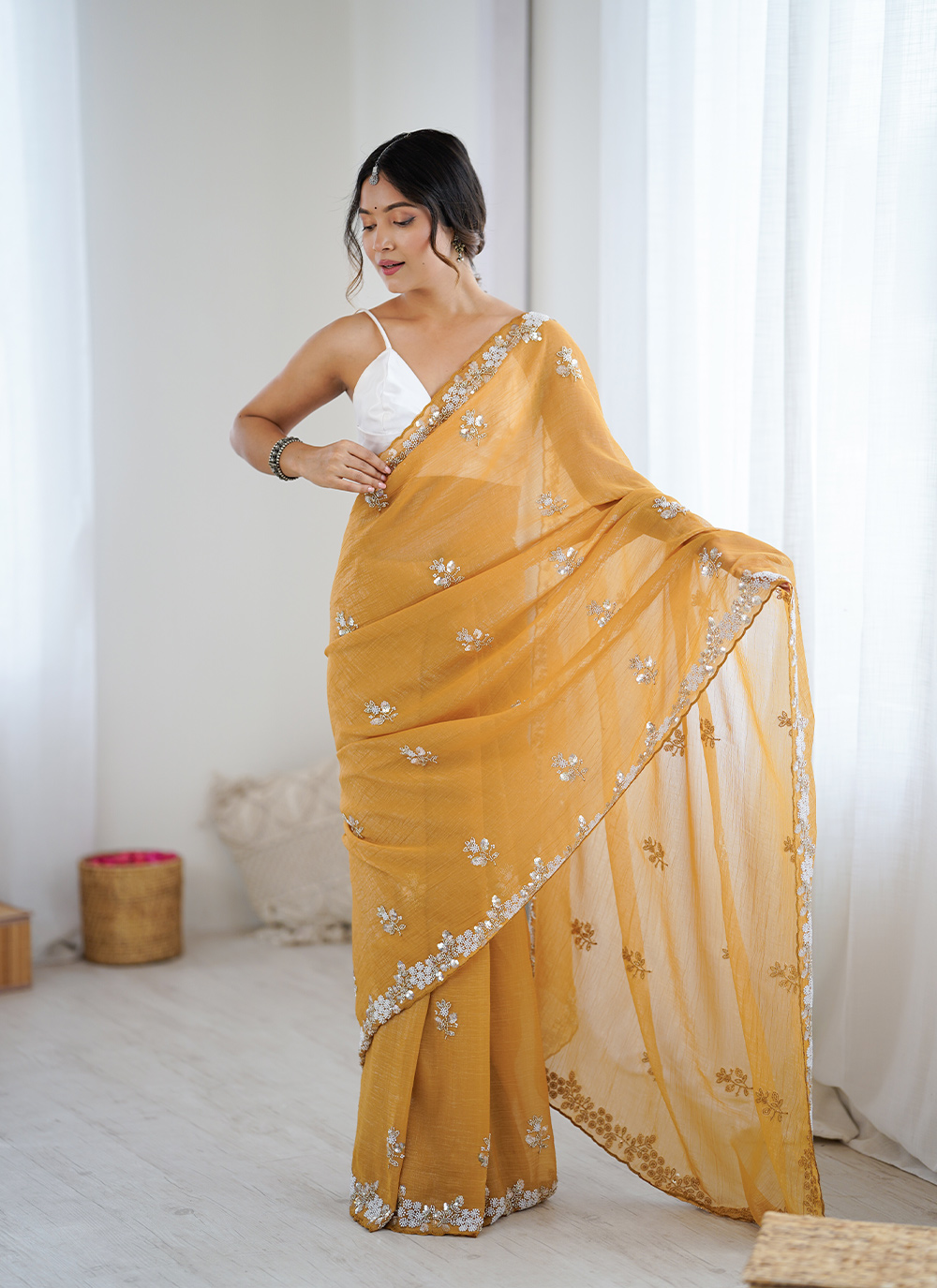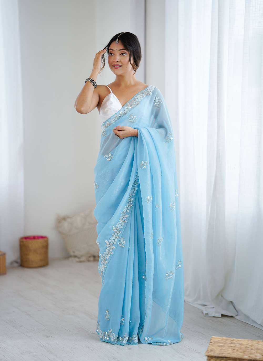 Looking These Party Wear Saree in Fine Colored.These Saree Are Chiffon Crush And Blouse is Ultra Stin Fabricated.Its Beautified With Designer Sequance,Moti,Cte Dana Embroidery Work.