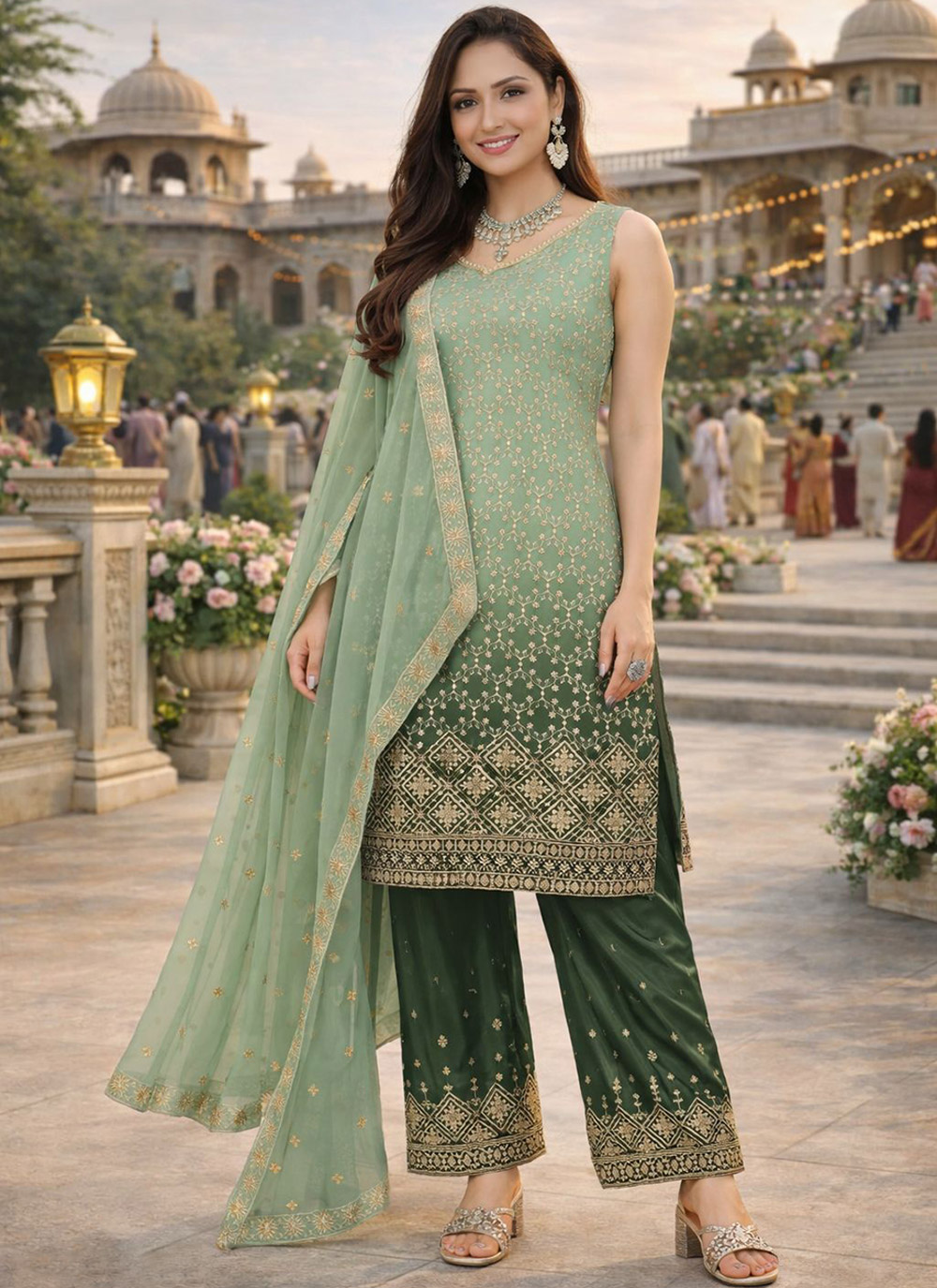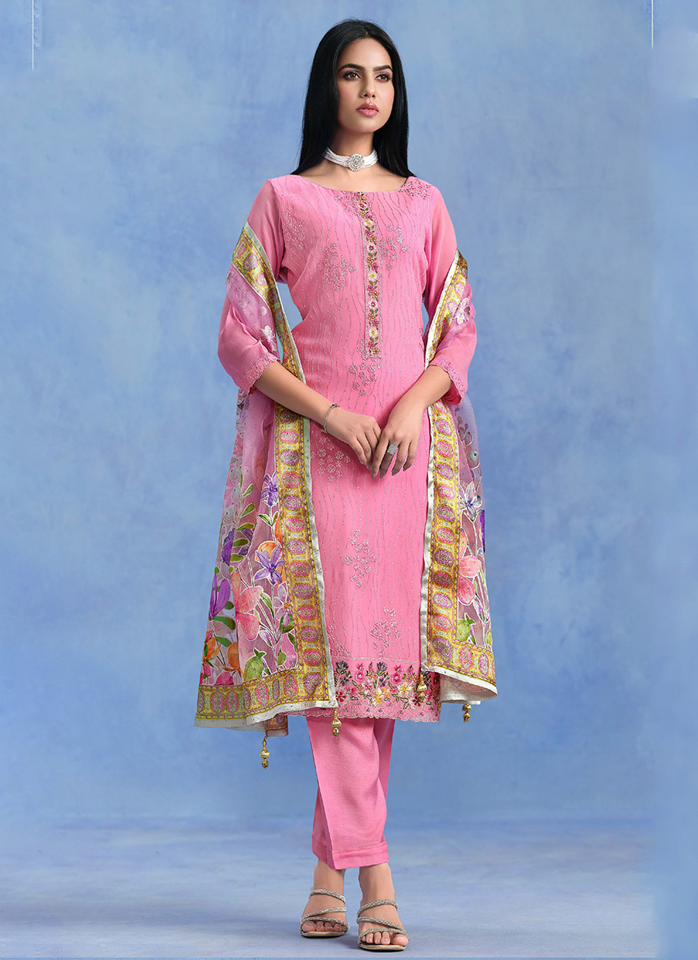 Garb These Beautiful Looking Readymade Suits.These Top And Dupatta Are Georgette And Bottom Are Georgette Fabricated.Its Beautified With Disigner Heavy Thread,Sequance Embroidery Work.