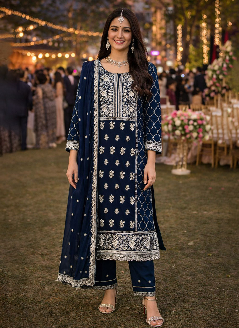 Garb These Beautiful Looking Readymade Suits.These Top And Dupatta Are Georgette And Bottom Are Santoon Fabricated.Its Beautified With Disigner Heavy Thread,Sequance Embroidery Work.