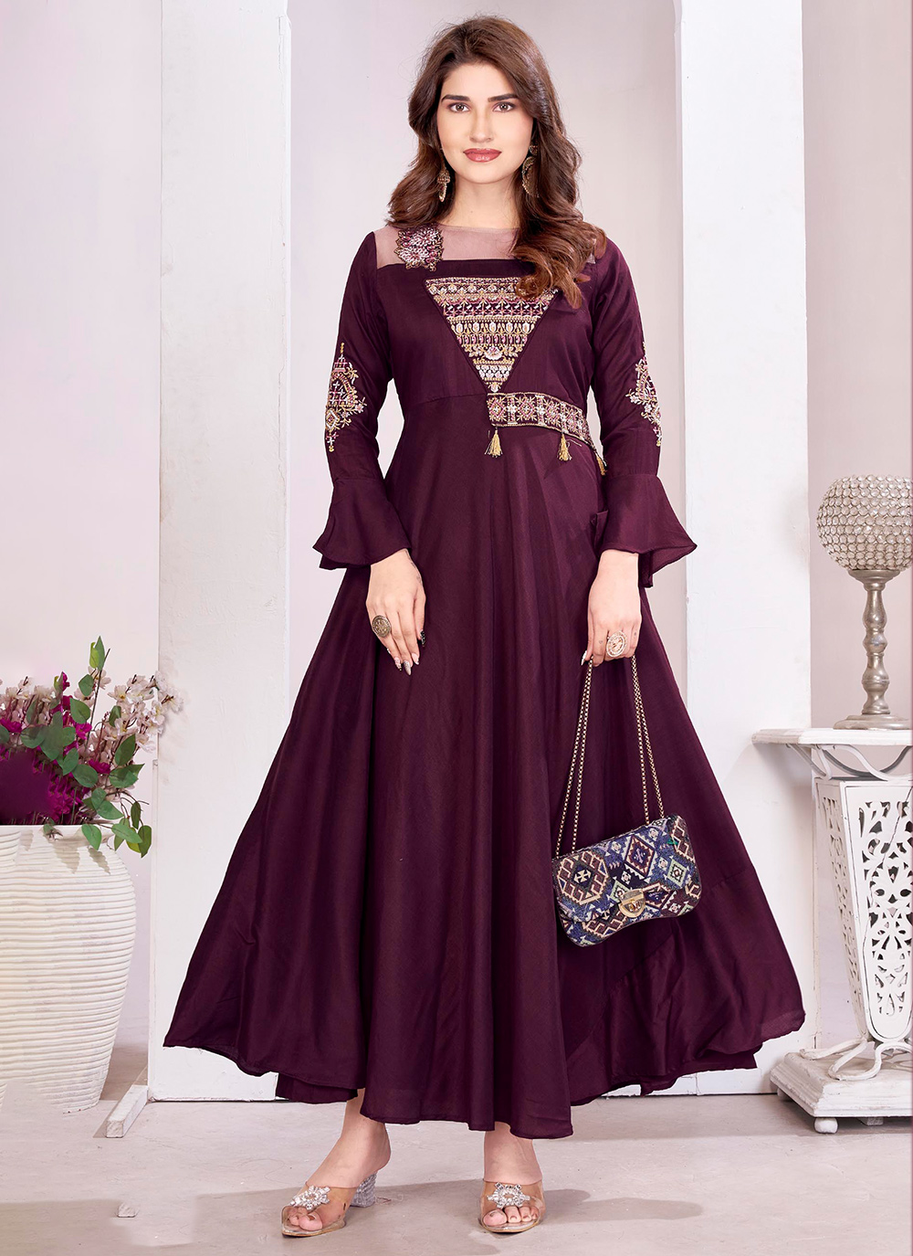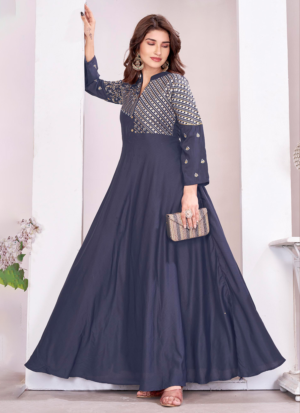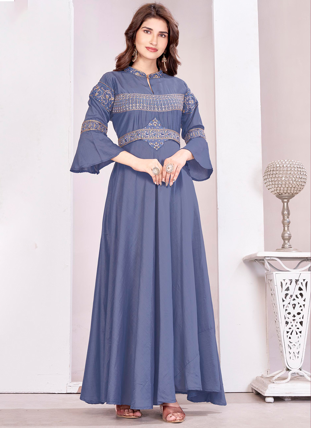 Grab These Beautiful Looking Readymade Gown.These Gown is Fabricated On Muslin.Its Beautified With Designer Embroidery Work.