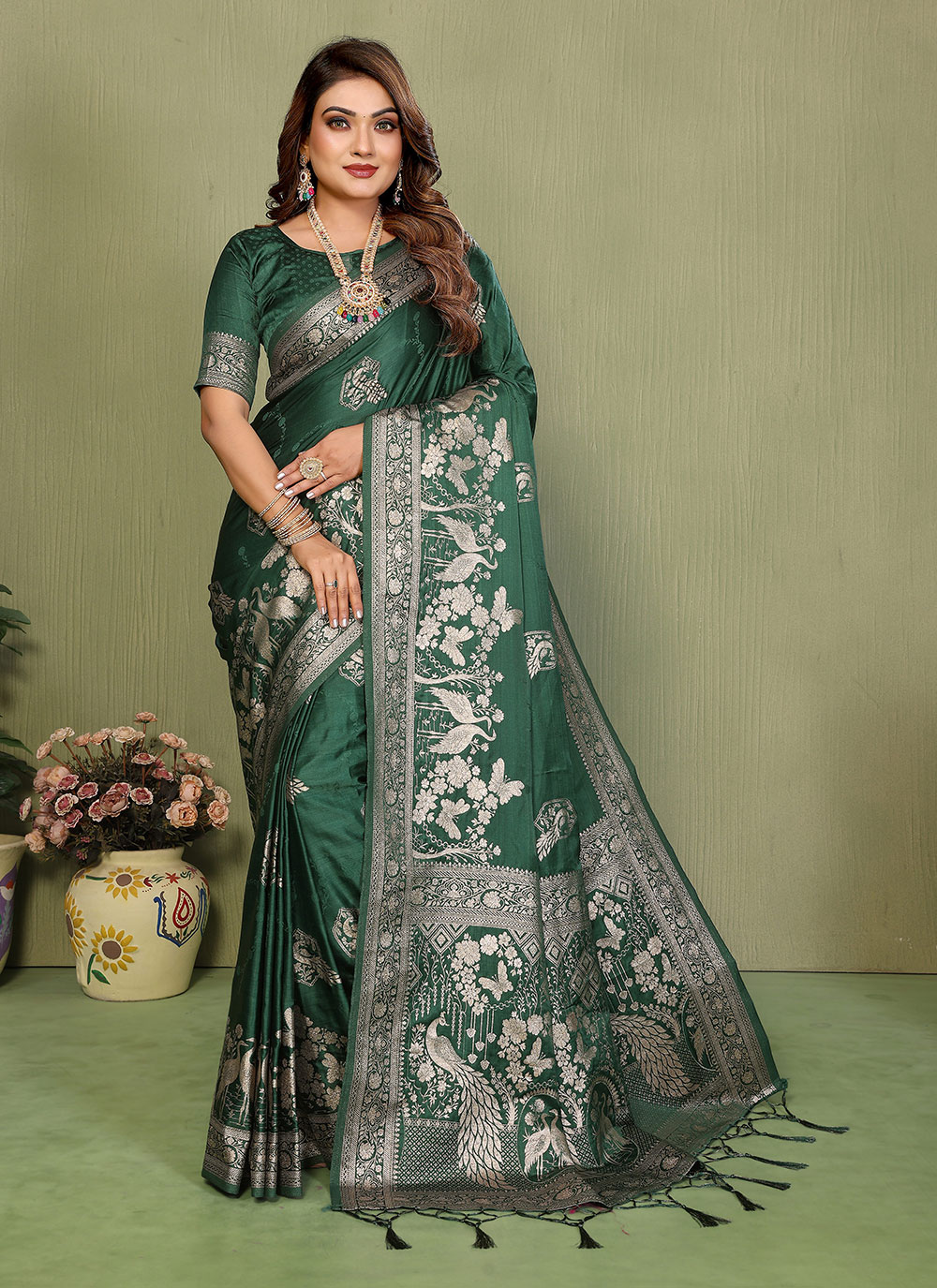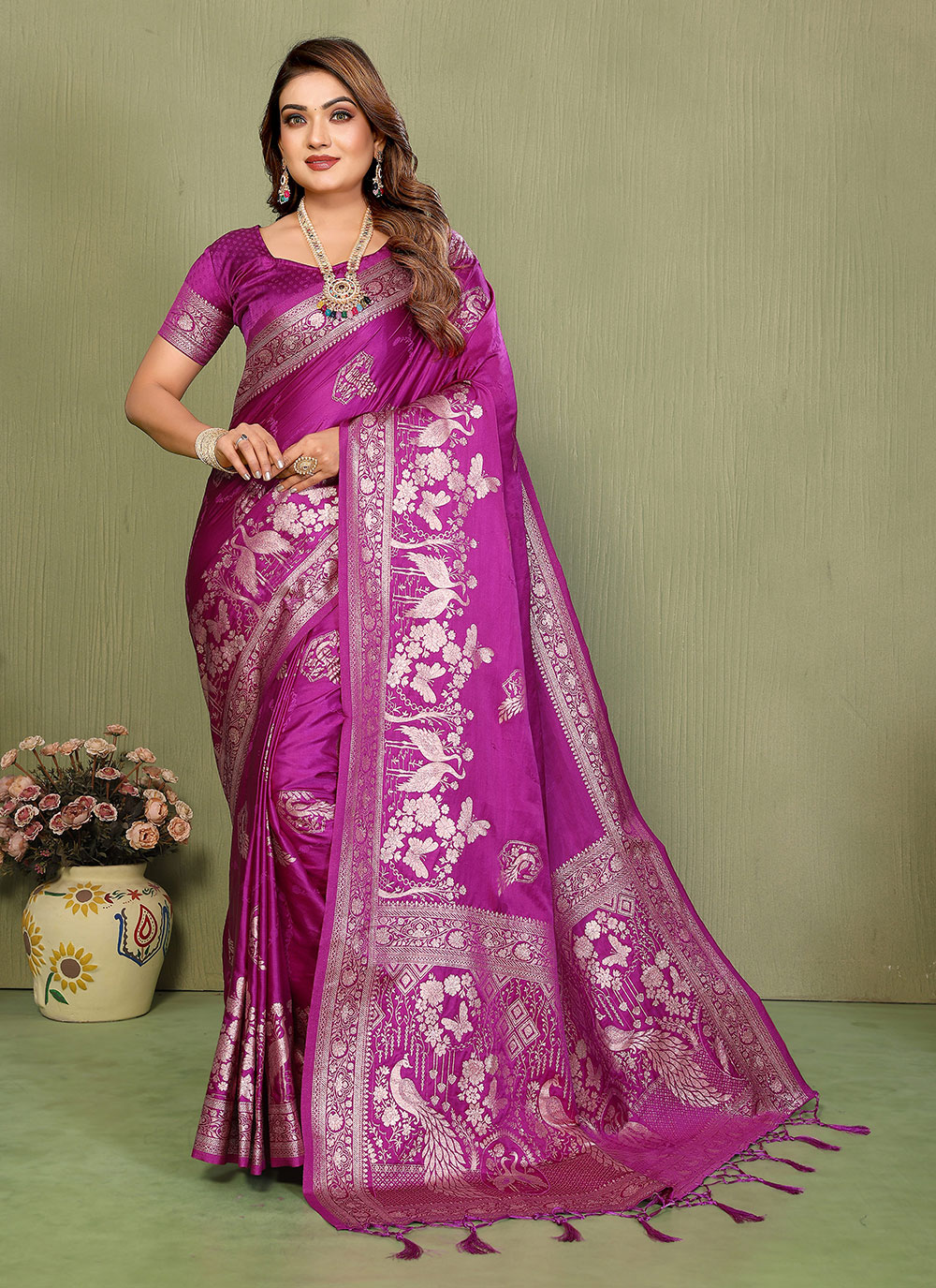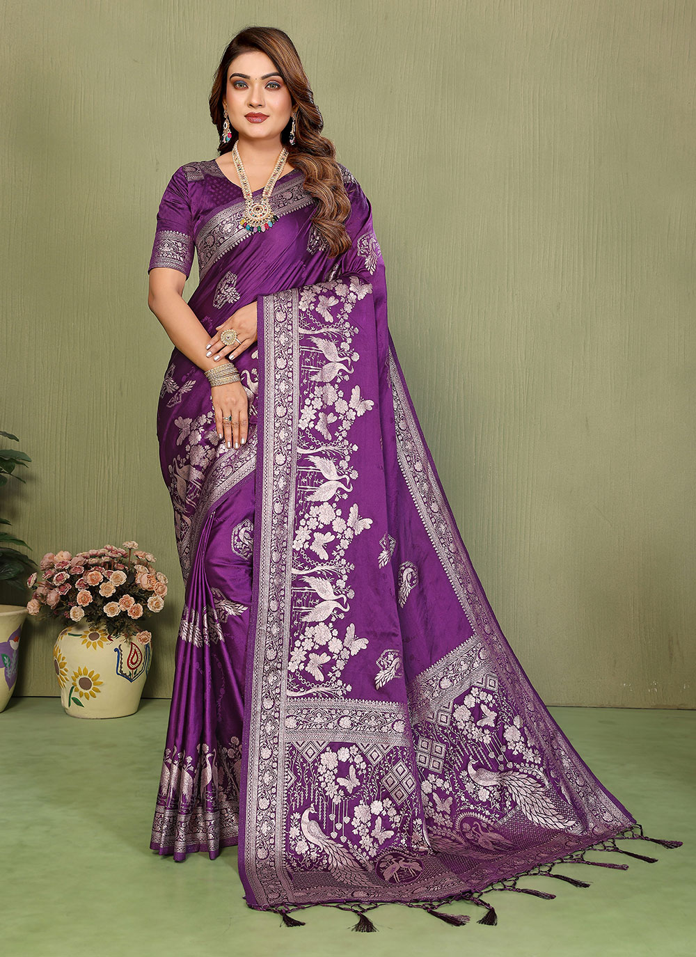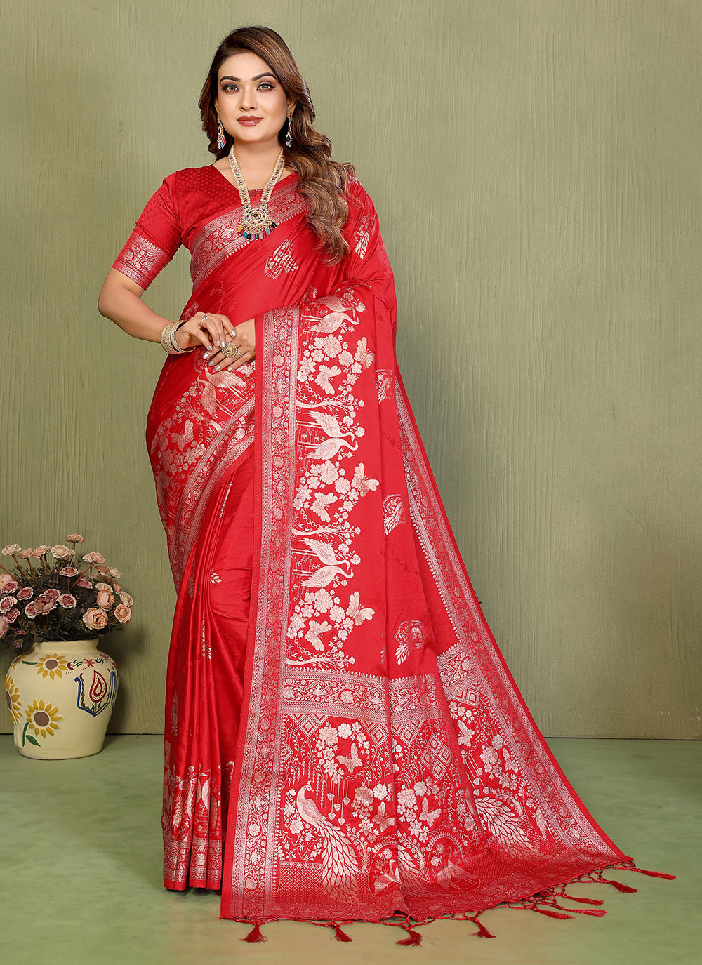 Saree : Satin Silk , Blouse : Satin Silk