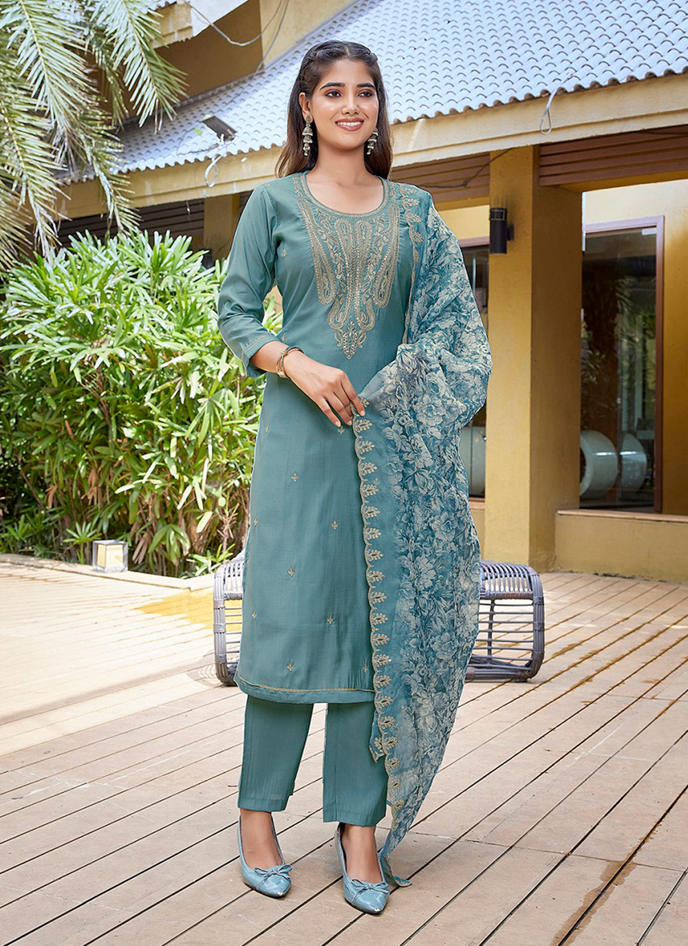 Attractive These Beautiful Party Wear Designer Readymade Suits.These Top And Bottom Are Viscose Chanderi And Dupatta is Fabricated On Organza.Its Beautified With Designer Embroidery Work,Printed Dupatta.