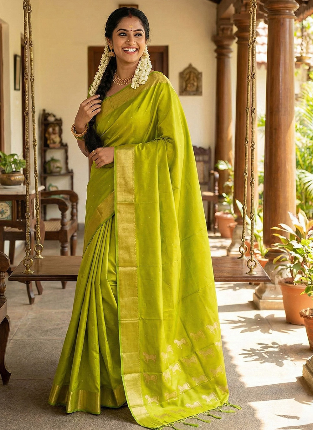 Garb These Fastive And Party Wear Saree in Fine Colored.These Saree And Blouse is Fabricated On Soft Silk.Its Beautified With Heavy Woven Jari Designer.