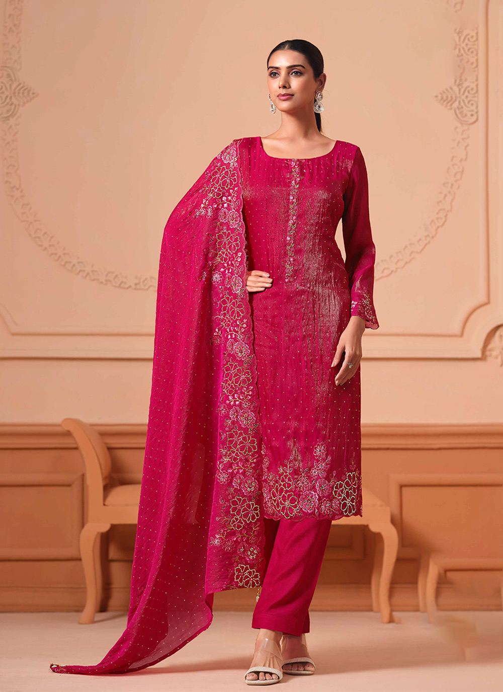 Attractive These Party Wear Salwar Suit in Fine Colored Pair With Bottom And Dupatta.These Top And Dupatta Are Fabricated On Martini Gold Pair With Santoon Bottom.Its Beautified With Heavy Designer Embroidery Work.