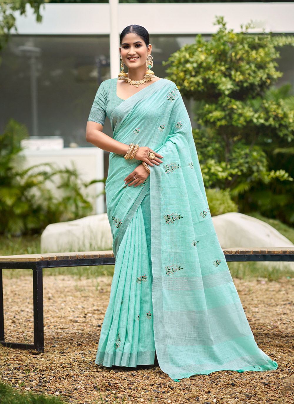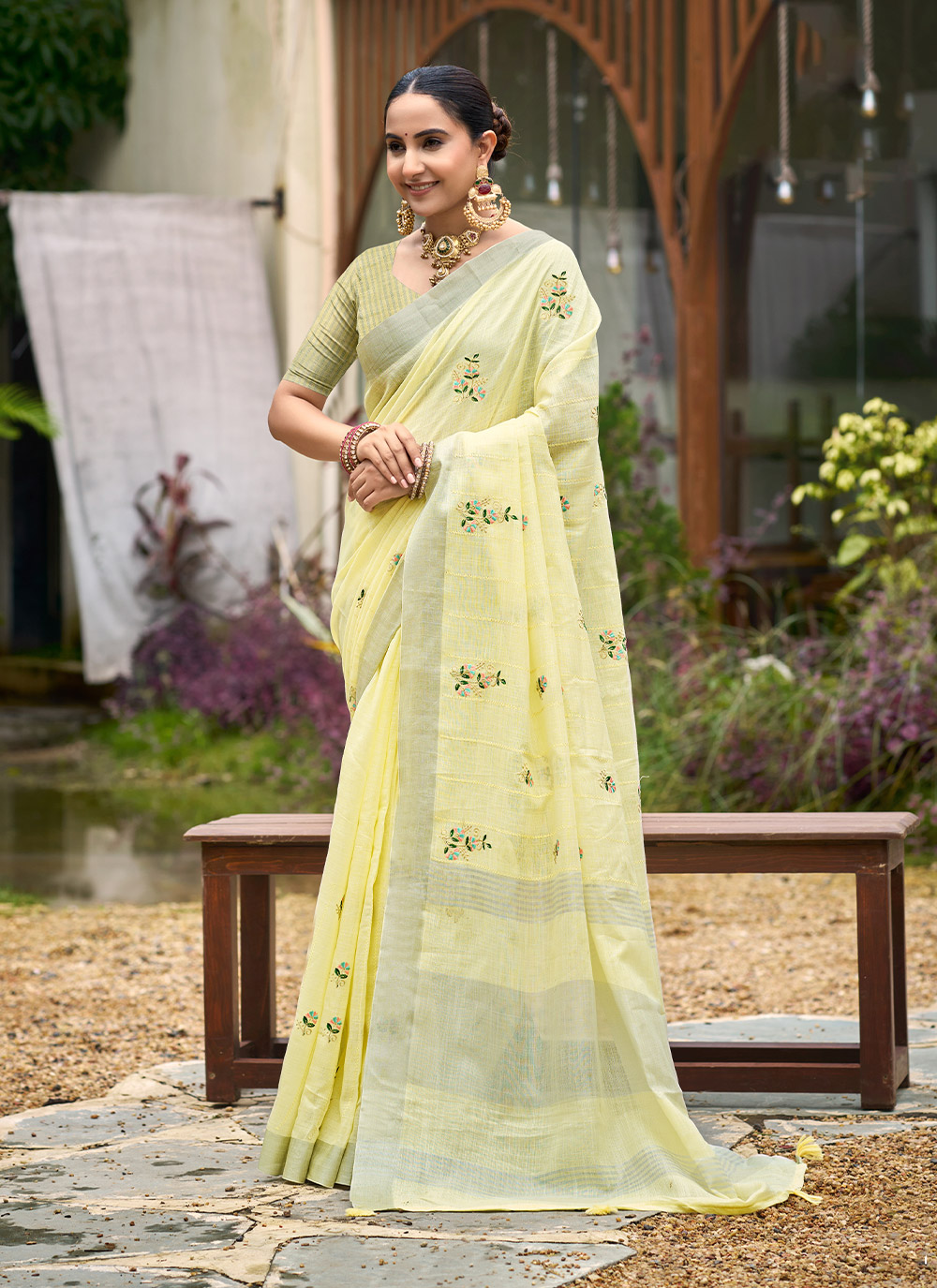 Garb These Fastive And Party Wear Saree in Fine Colored.These Saree And Blouse is Fabricated On Linen.Its Beautified With Heavy Woven Border Designer With Embroidery work.