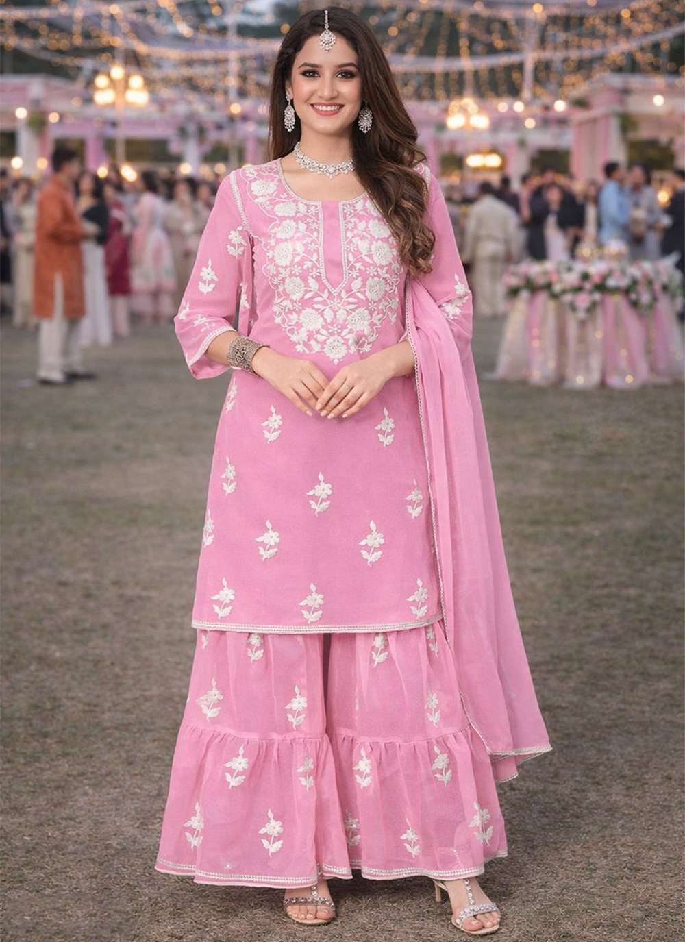 Attrective These Beautiful Looking Party Wear Free Size Plazzo Suits.These Top And Bottom Are Georgette And Georgette Dupatta Fabricated.Its Beautified With Disigner Heavy Embroidery Work.
