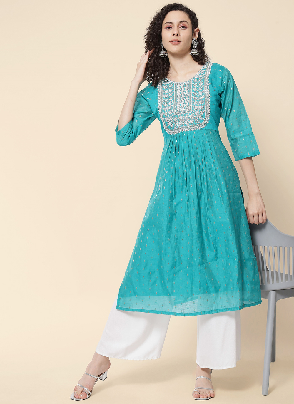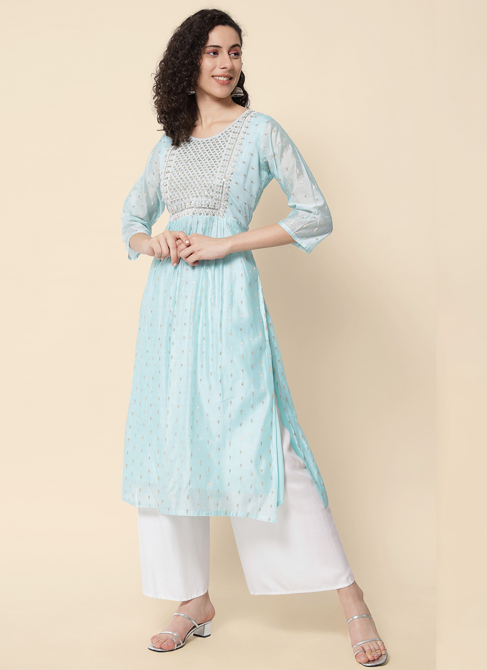 Attrective These Beautiful Looking Readymade Kurti.These Kurti Fabricated On Chanderi Modal.Its Beautified With Woven Butti Designer With Coding Embroidery Work.
