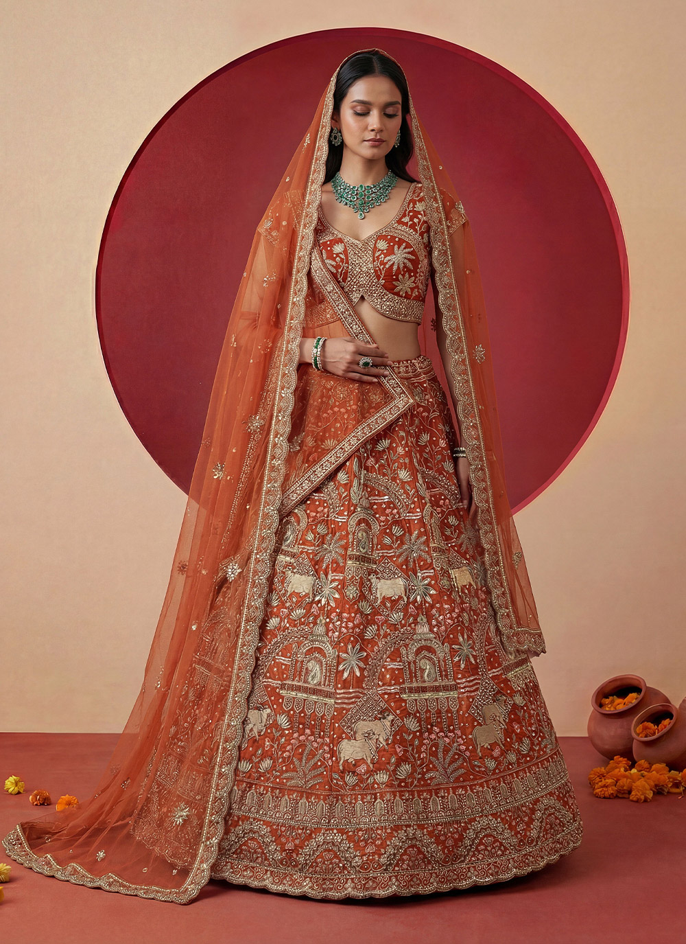 Blouse : Silk , Lahenga : Silk , Dupatta : Soft Net