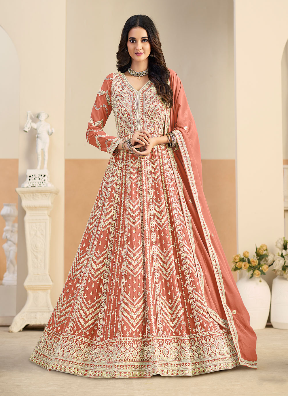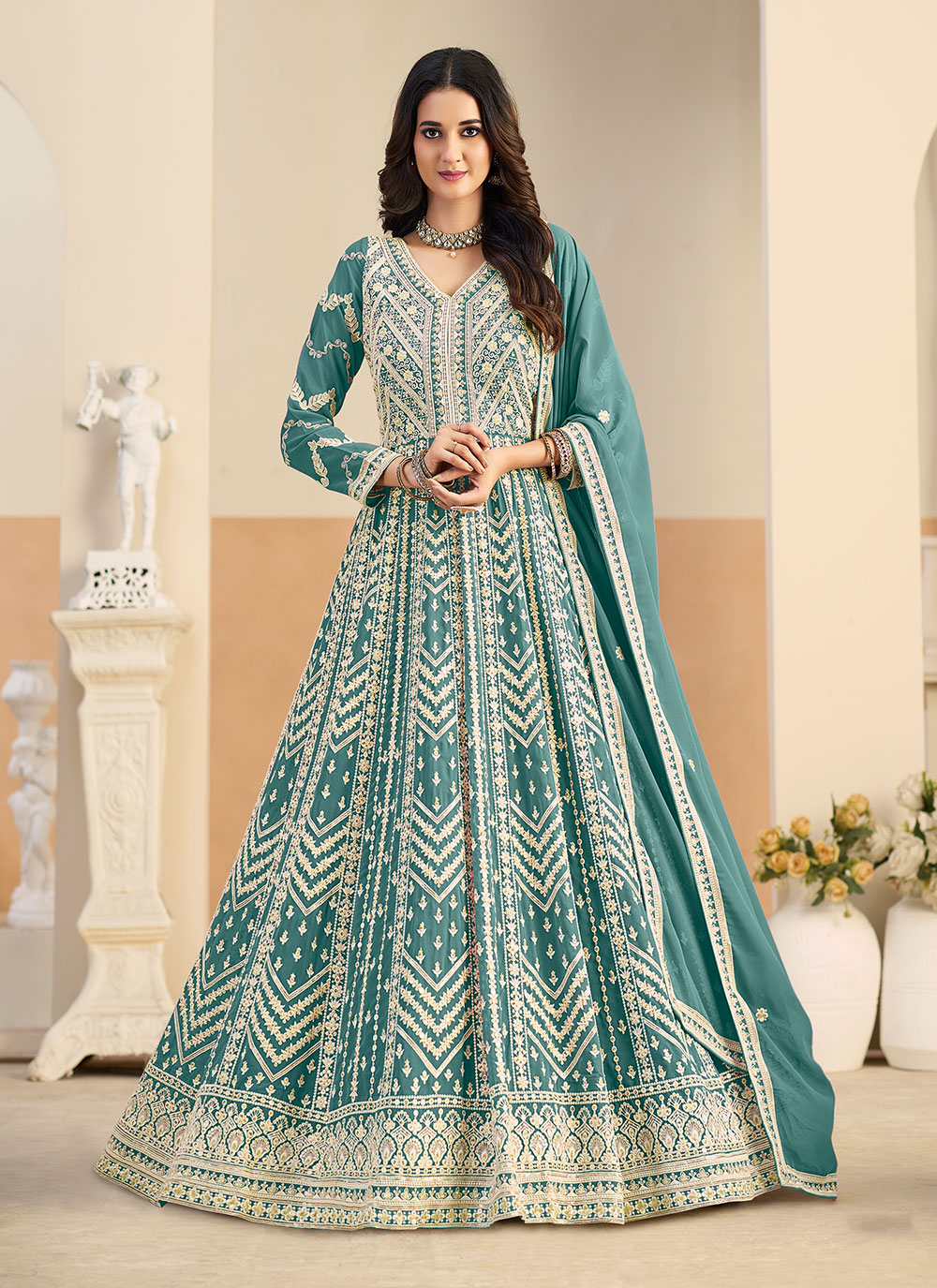 Looking These Beautiful Party Wear Fine Color Anarkali Suits.These Top Are Faux Georgette And Dupatta Are Faux Georgette And Bottom Santoon Fabricated.Its Beautified With Heavy Designer Embroidery Work.
