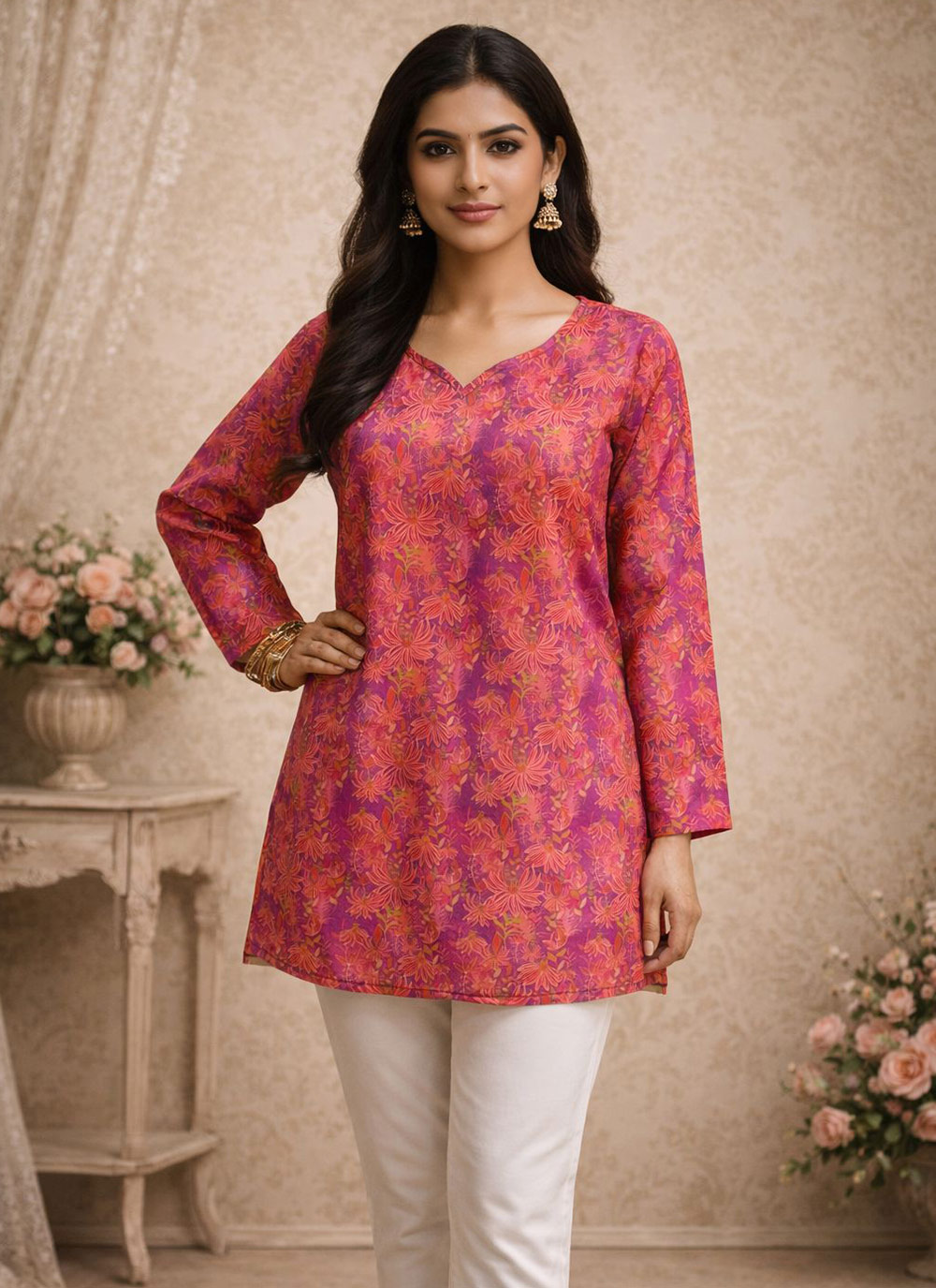 Looking These Beautiful Looking Readymade Short Top.These Top Are Fabricated On Maslin.Its Beautified With Designer Digital Printed.