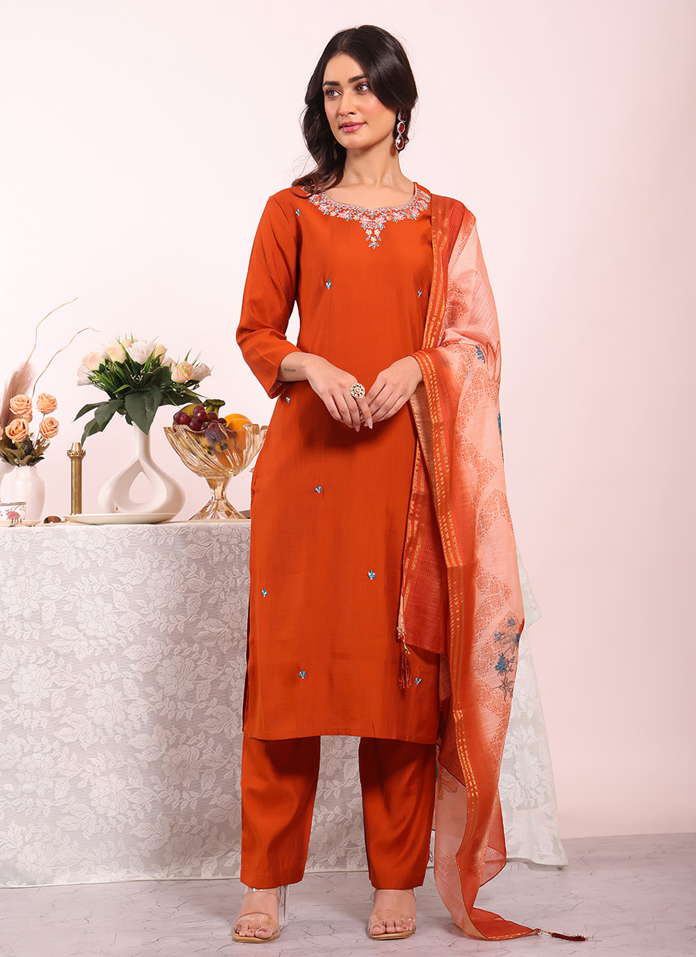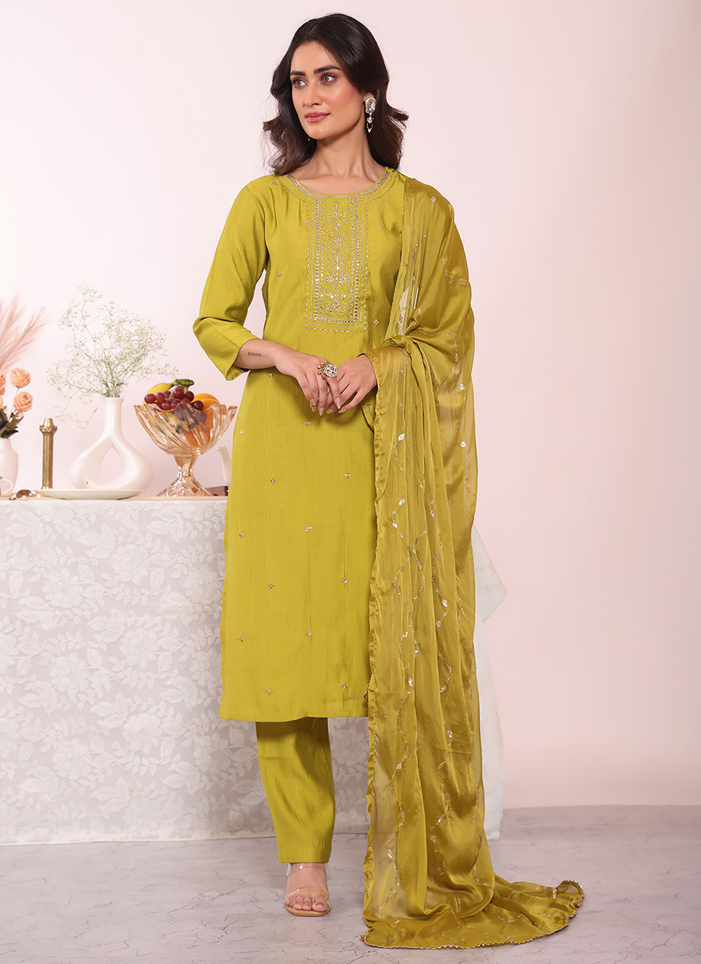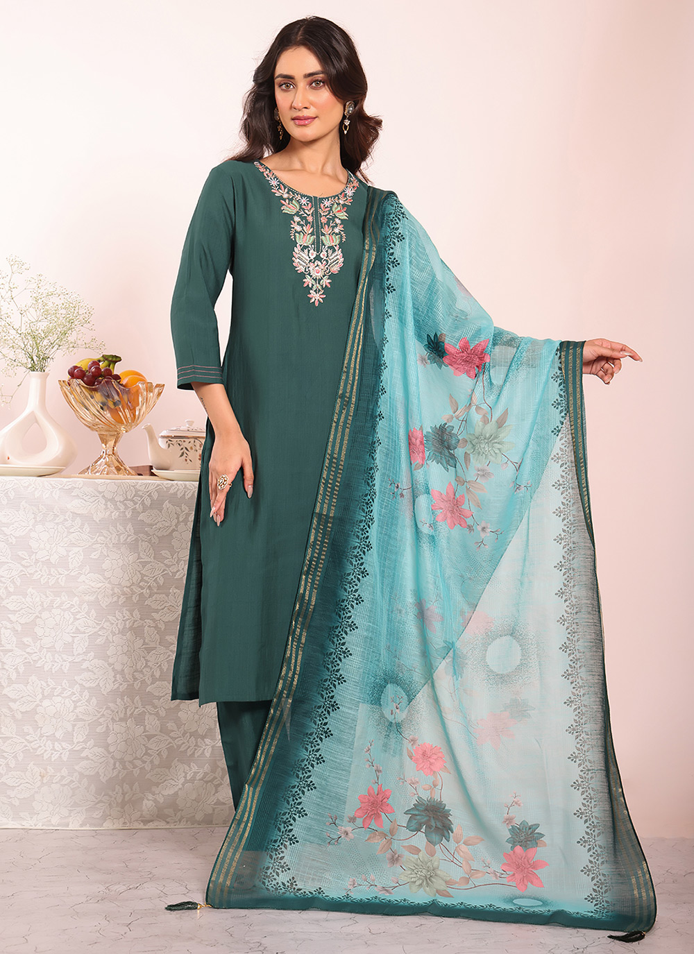 Garb These Suit in Fine Colored Pair With Bottom And Dupatta.These Top Are Poly Silk And Bottom Are Fabricated On Poly Silk Pair With Silk Dupatta.Its Beautified With Designer Embroidery Work.