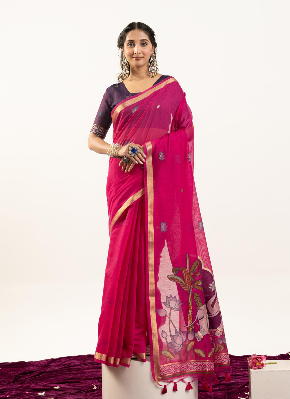 Garb These Festive Wear Saree in Fine Colored.These Saree And Blouse is Fabricated On Muga Cotton.Its Beautified With Multy Thread Rajwadi Weaving Designer.