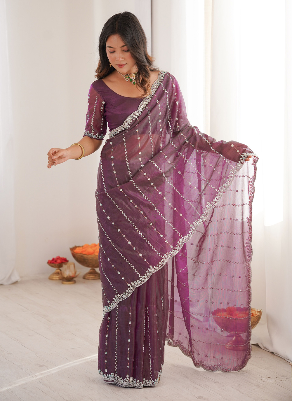 Attractive These Fancy Party Wear Saree in Fine Two Tone Colored.These Saree Are Twill Net And Blouse is Twill Net Fabricated.Its Beautified With Two Tone Color,Designer Sequance,Cut Dana Work.