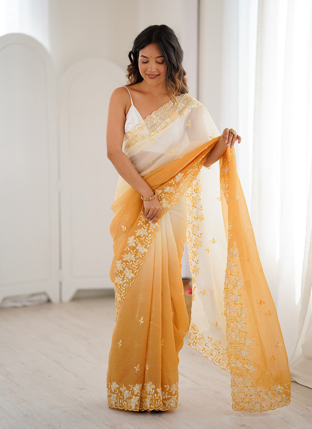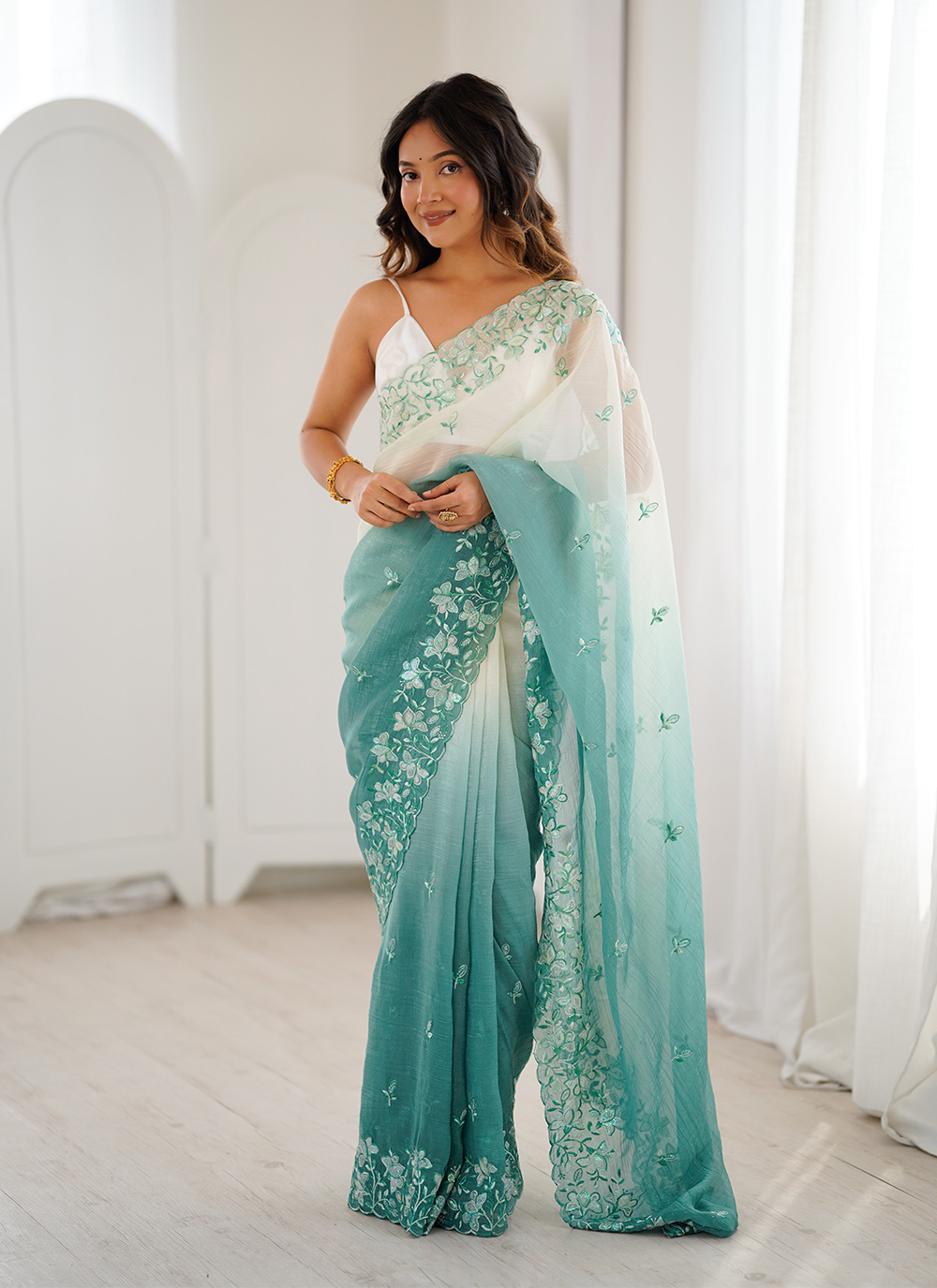 Attractive These Fancy Party Wear Saree in Fine Pedding Colored.These Saree Are Crunchy And Blouse is Satin Silk Fabricated.Its Beautified With Peding Color,Designer Sequance Embroidery Work.