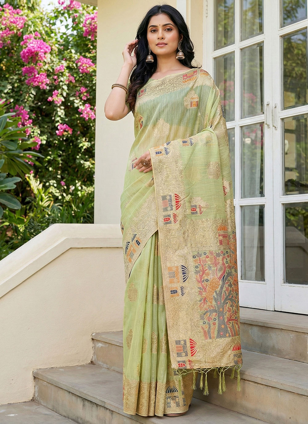 Saree : Linen Cotton , Blouse : Linen Cotton
