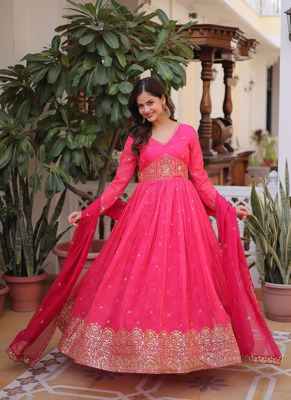 Gown : Gold Crush , Inner : Cotton , Dupatta : Gold Crush