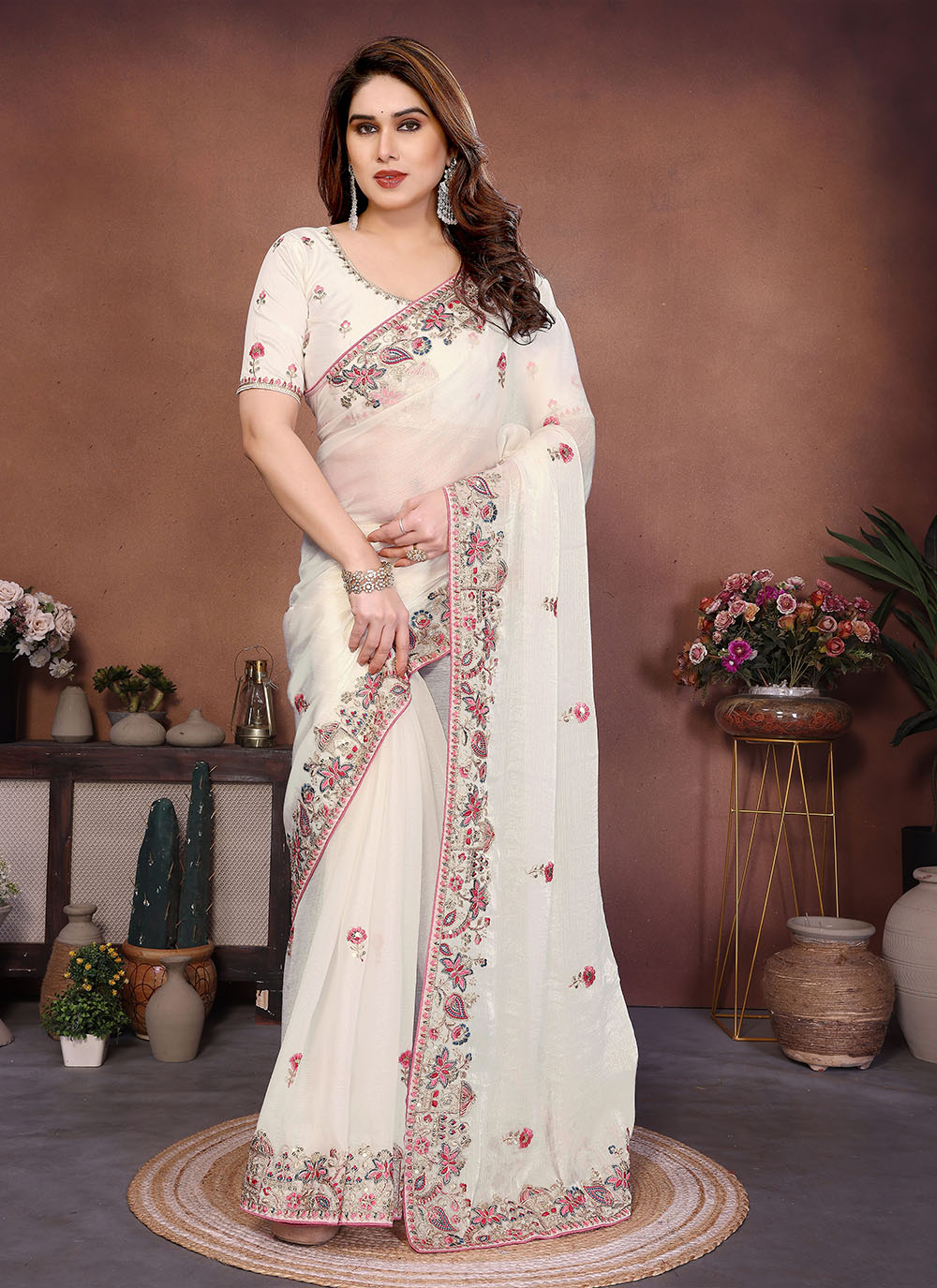 Attrective These Party Wear Saree in Fine Colored.These Saree Are Fendy Chiffon And Blouse is Fendy Chiffon Fabricated.Its Beautified With Heavy Designer Embroidery Work.