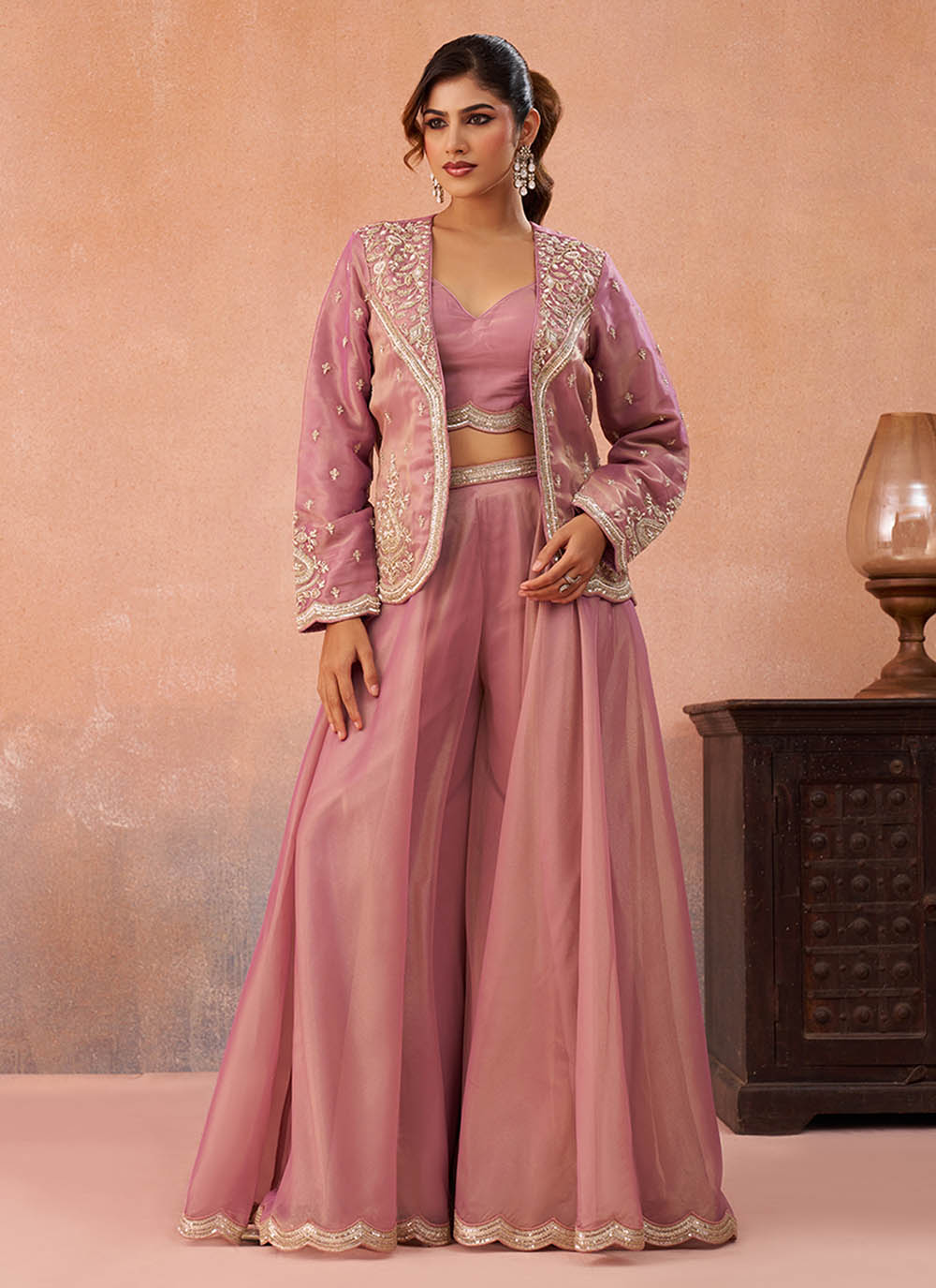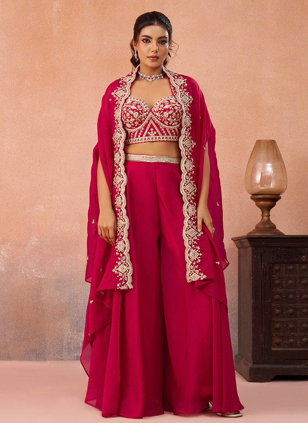 Looking These Beautiful Looking Party Wear Readymade Indo Western Crop Top ,Plazzo With Jacket.These Top Are Organza And Bottom is Fabricated On Organza And Organza Jacket.Its Beautified With Heavy Designer Embroidery,Beads,Stone Work.