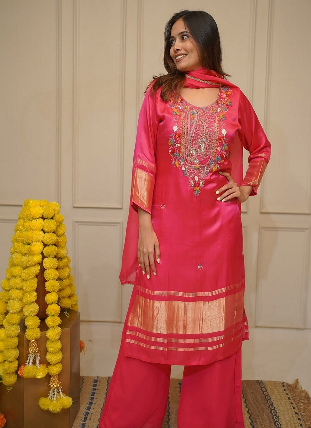 Top : Chanderi , Bottom : Chanderi , Dupatta : Organza