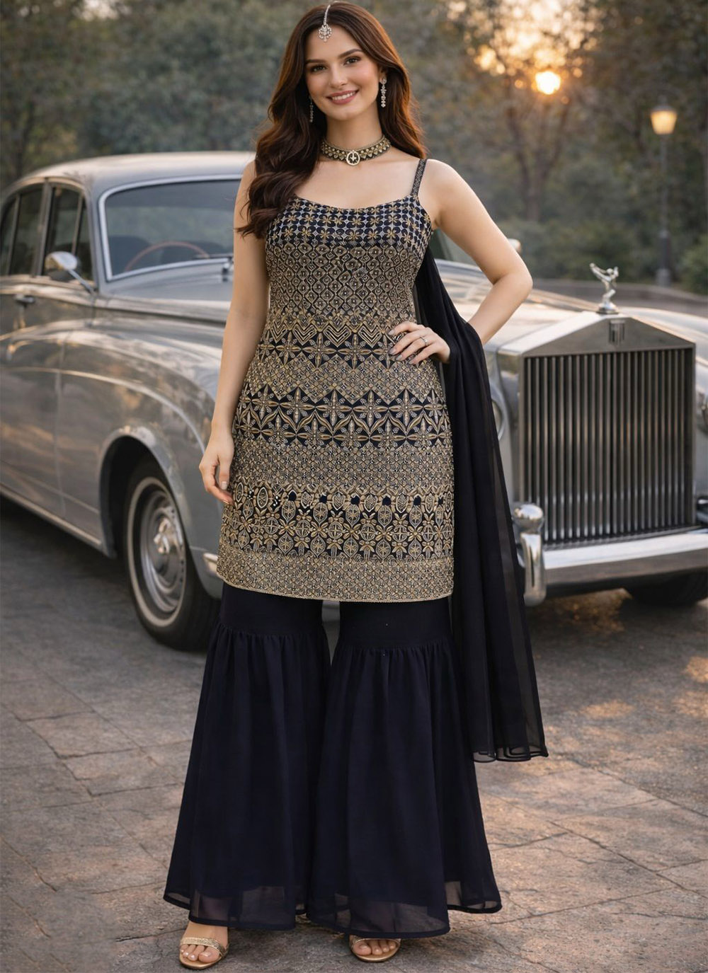 Garb These Beautiful Looking Readymade Sharara Suits.These Top And Dupatta Are Georgette And Bottom Are Georgette Fabricated.Its Beautified With Disigner Heavy Thread,Sequance Embroidery Work.