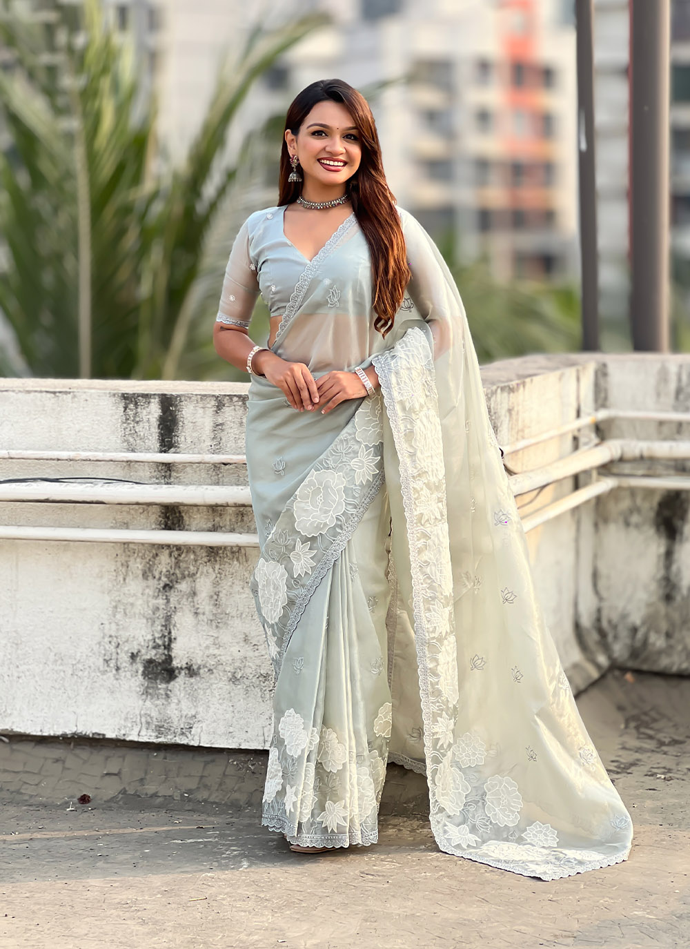 Attractive These Party Wear Saree in Fine Colored.These Saree And Blouse is Fabricated On Oris Silk.Its Beautified With Designer Lotus Embroidery,Cut Work.