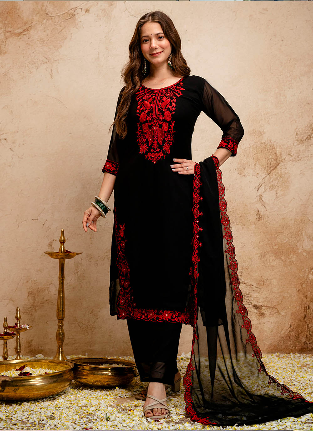 Looking These Suit in Fine Colored Pair With Top Bottom And Dupatta.These Top Are Georgette And Bottom Are Fabricated On Georgette Pair With Georgette Dupatta.Its Beautified With Designer Embroidery Work.