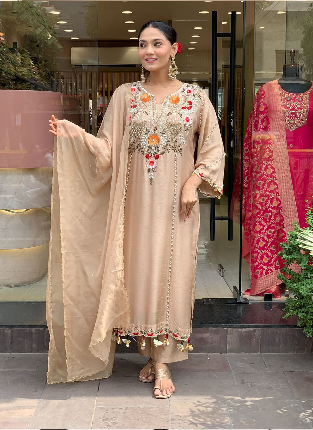 Looking These Suit in Fine Colored Pair With Top Bottom And Dupatta.These Top Are Viscose And Bottom Are Fabricated On Viscose Pair With Chanderi Dupatta.Its Beautified With Designer Embroidery Work.