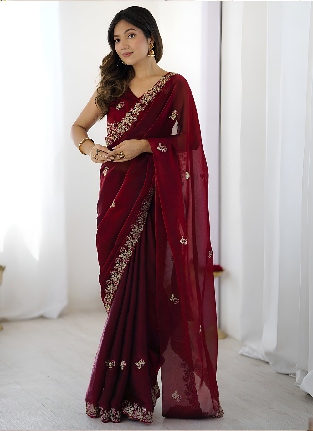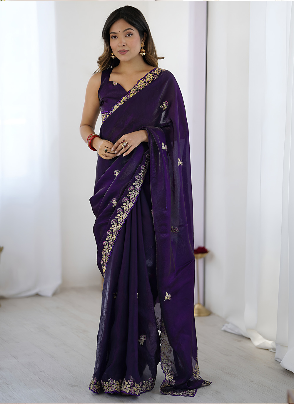 Attractive Look These Party Wear Saree in Fine Colored.These Saree Are Fendy Satin Silk And Blouse is Fendy Satin Silk Fabricated.Its Beautified With Designer Sequance,Thread,Codding Embroidery Cut Work.