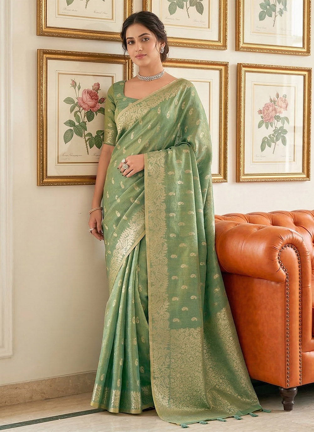 Saree : Tissue Silk , Blouse : Tissue Silk