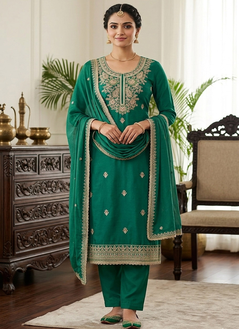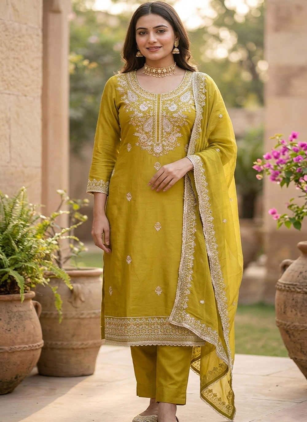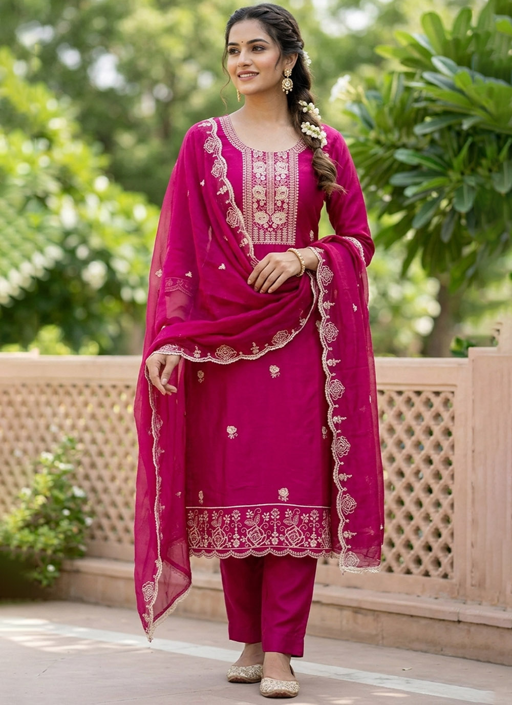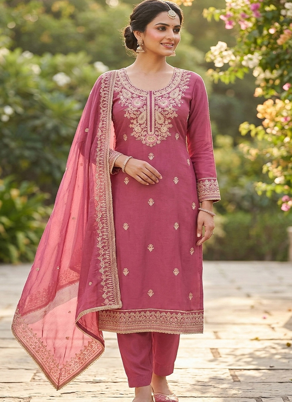 Looking These Suit in Fine Colored Pair With Bottom And Dupatta.These Top Are Viscose Satin And Dupatta Are Fabricated On Nazmin Pair With Rayon Bottom.Its Beautified With Designer Embroidery,Hand Work.