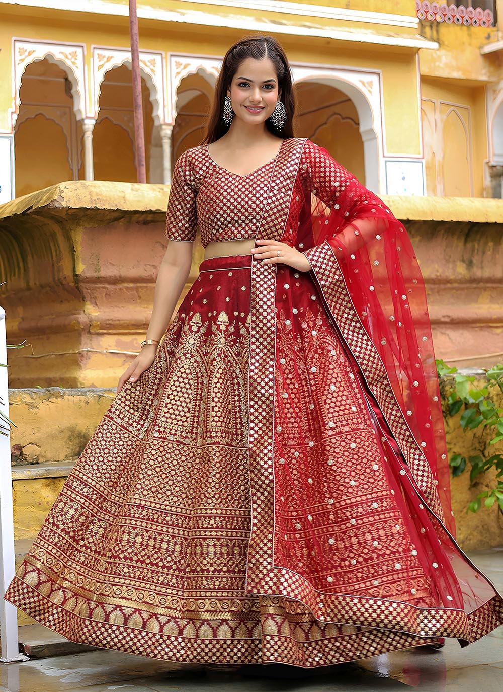 Blouse : Slub Silk , Lahenga : Slub Silk , Dupatta : Soft Net