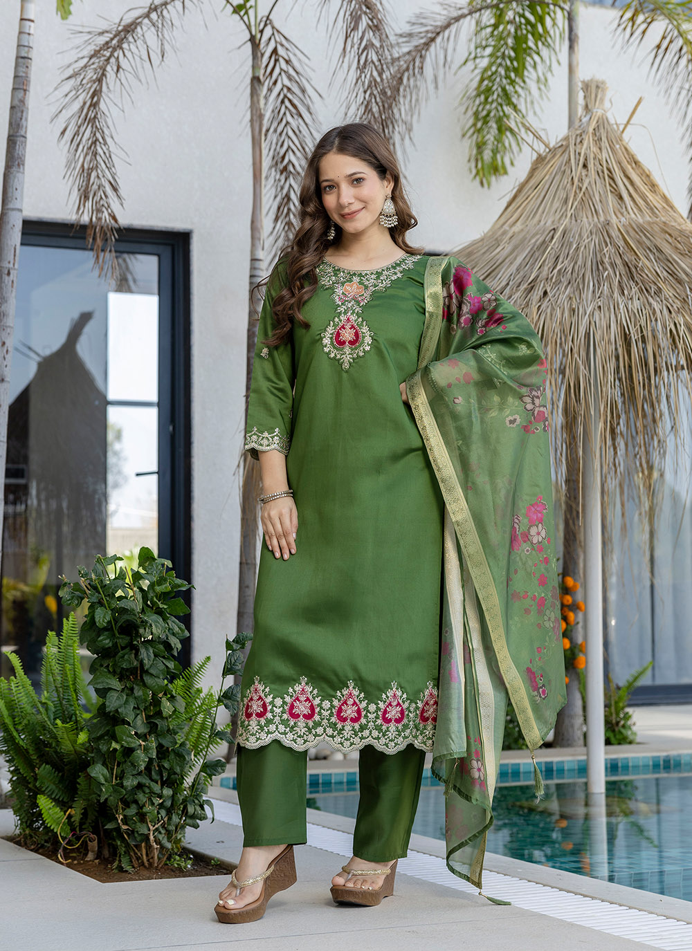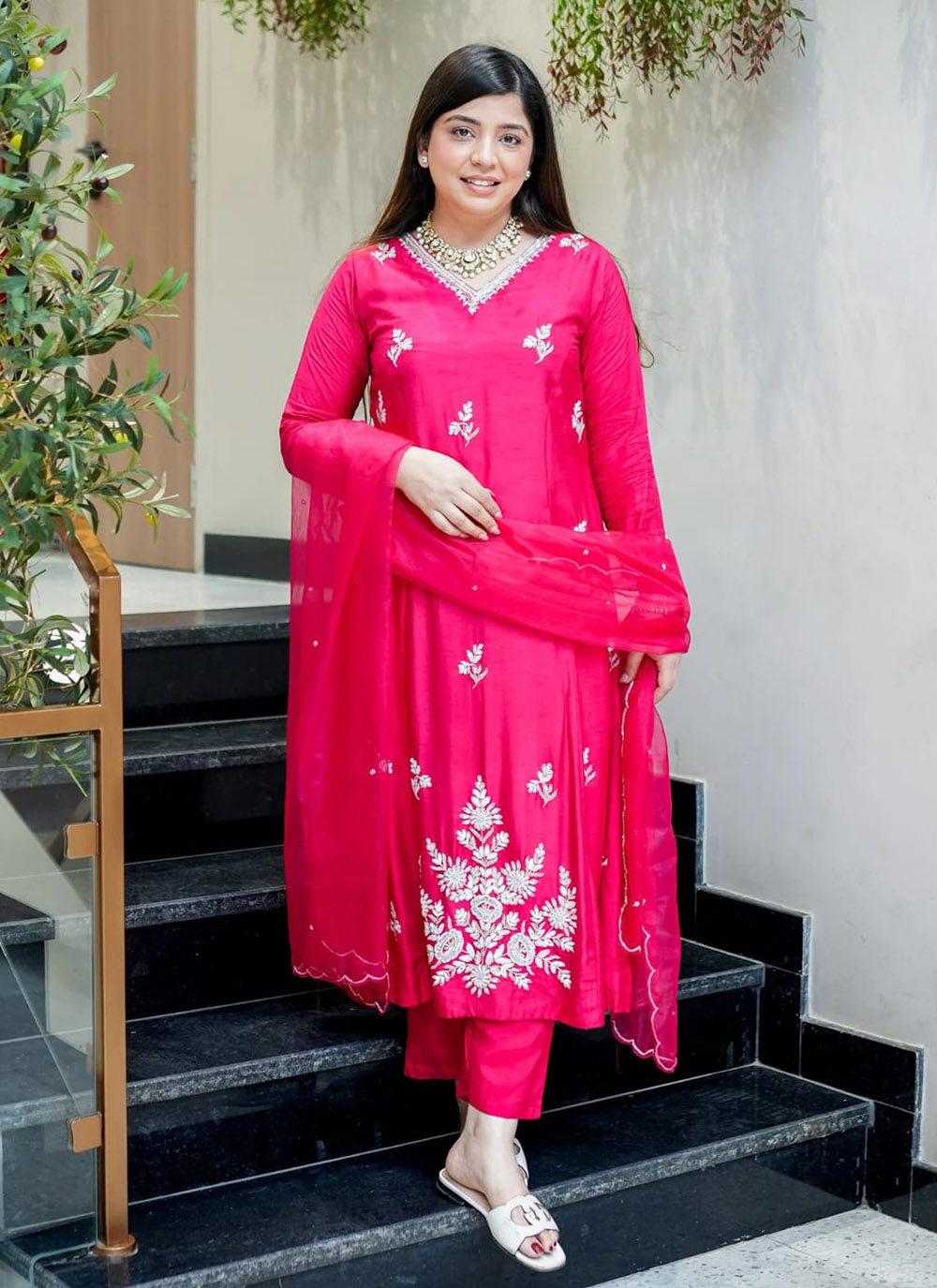Garb These Suit in Fine Colored Pair With Bottom And Dupatta.These Top Are Simmer Chanderi And Bottom Are Fabricated On BSY Chanderi Pair With Organza Dupatta.Its Beautified With Designer Embroidery Work.