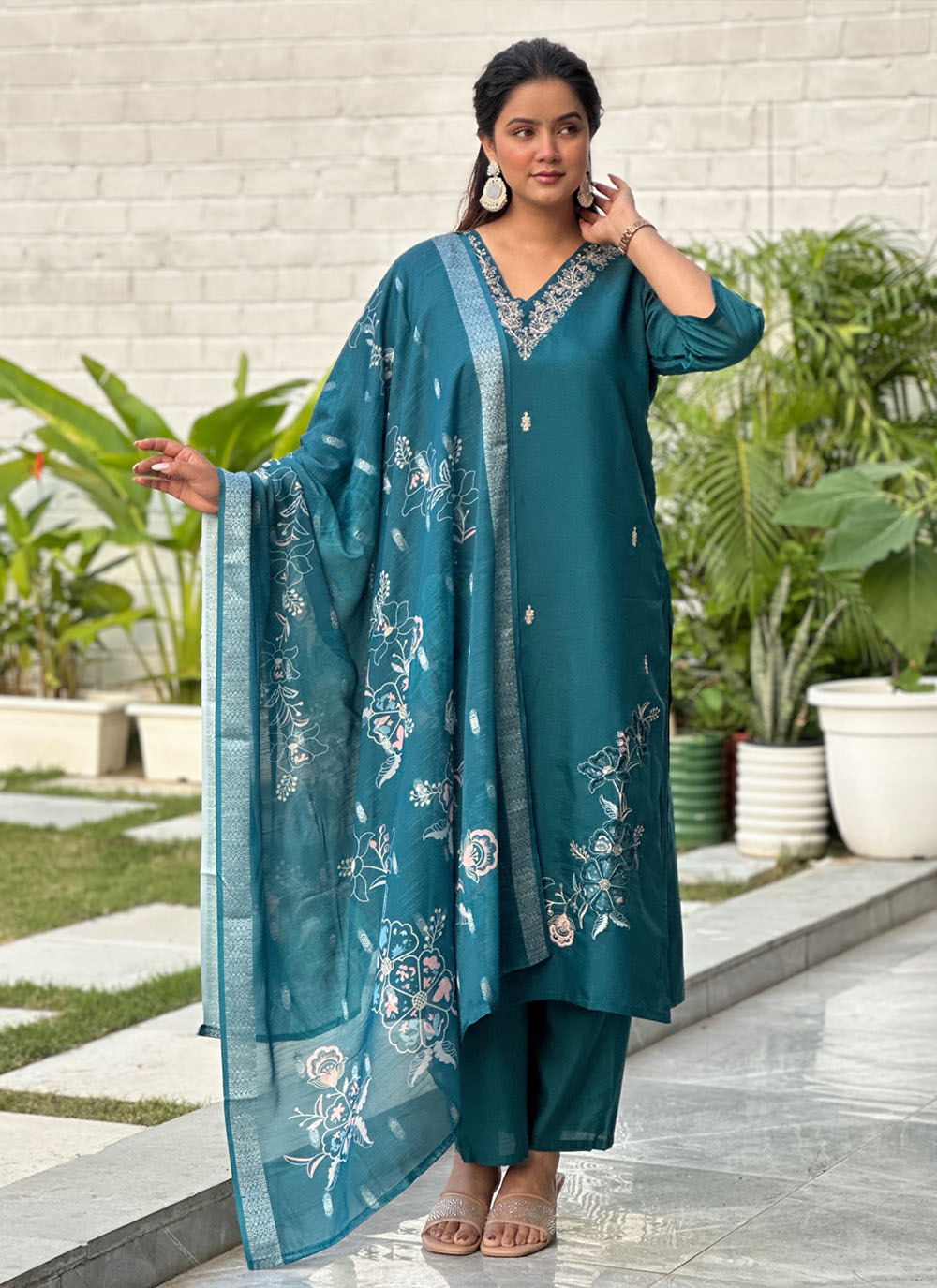 Attractive These Beautiful Readymade Suits With Dupatta.These Suit is Fabricated On Top Are Silk Blend And Bottom Are Silk Blend And Silk Blend Dupatta .Its Beautified With Designer Printed.