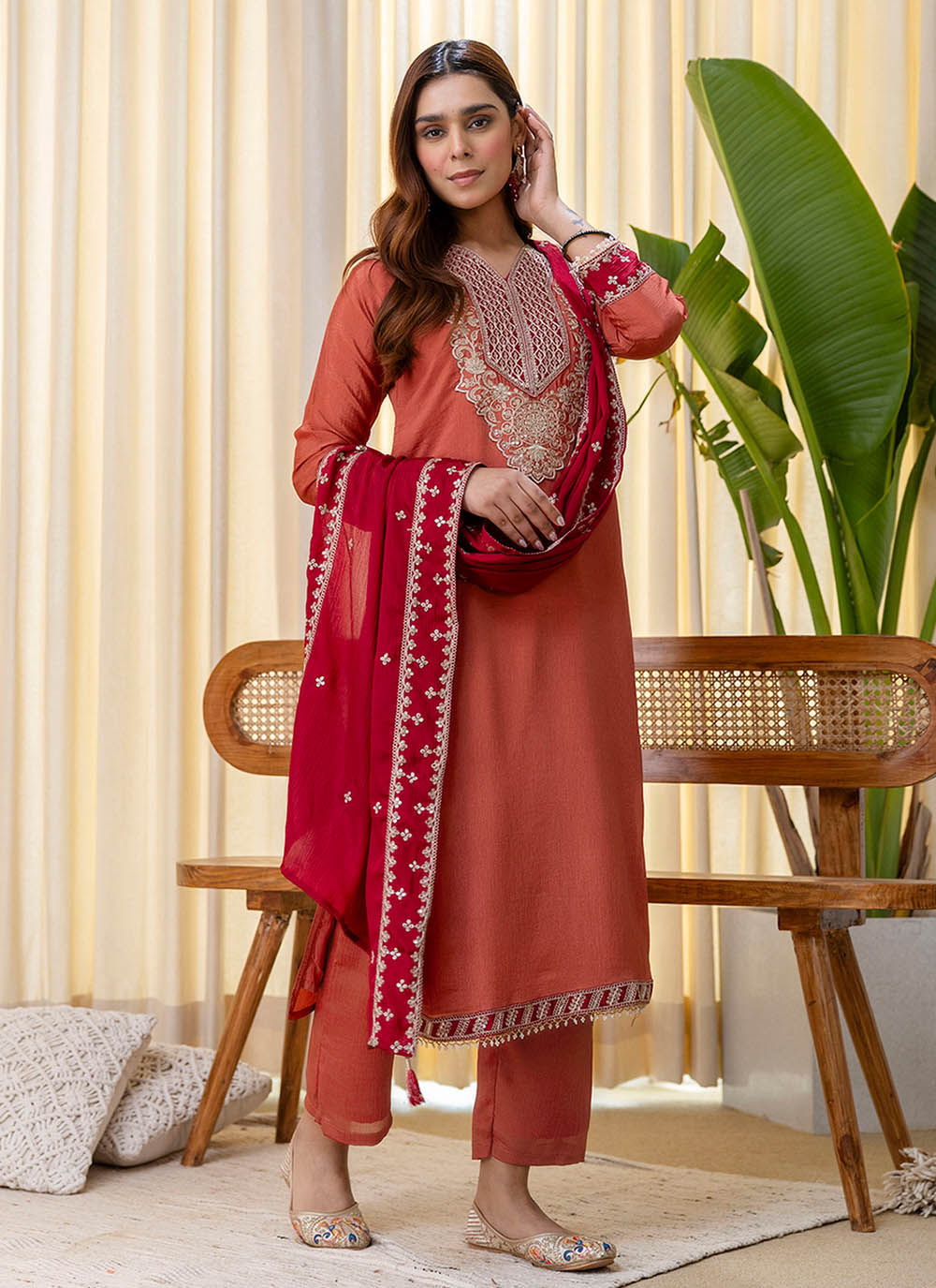 Attractive These Beautiful Readymade Suits With Dupatta.These Suit is Fabricated On Top Are Silk Blend And Bottom Are Silk Blend And Silk Blend Dupatta .Its Beautified With Designer Embroidery Work.